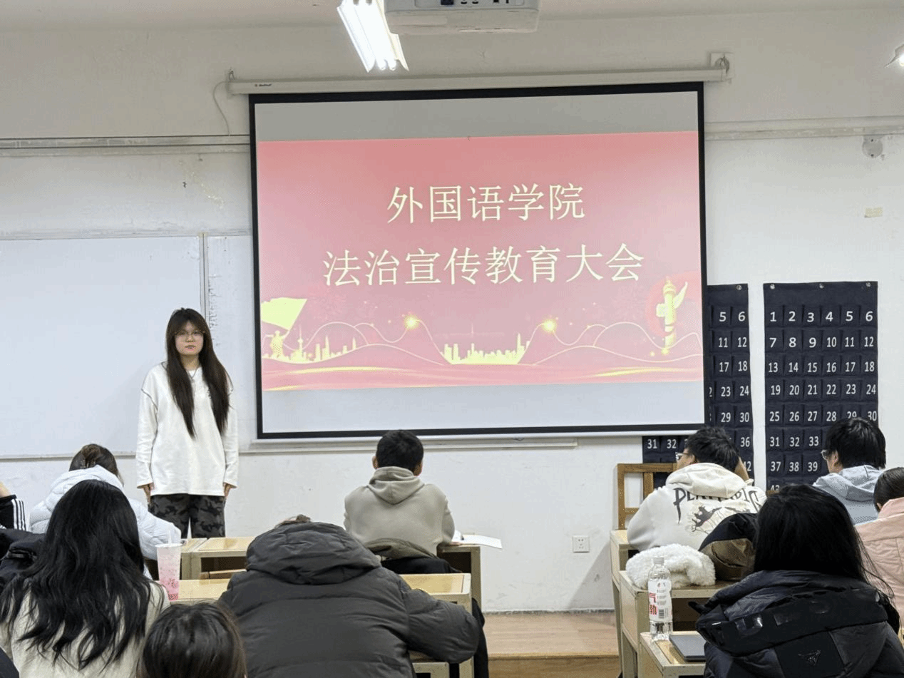 12月5日,外国语学院在2531教室组织开展法治宣传教育活动。活动由学联部部员李昊颖主讲,围绕宪法与日常生活、青少年法律常识、校园法治安全等内容展开讲解。通过案例分析、情景互动、知识问答等形式,引导学生理解法律就在身边、法治关乎每一个人。活动现场气氛活跃,同学们积极参与讨论,纷纷表示要将法治意识内化于心、外化于行,做社会主义法治的忠实崇尚者、自觉遵守者和坚定捍卫者。
