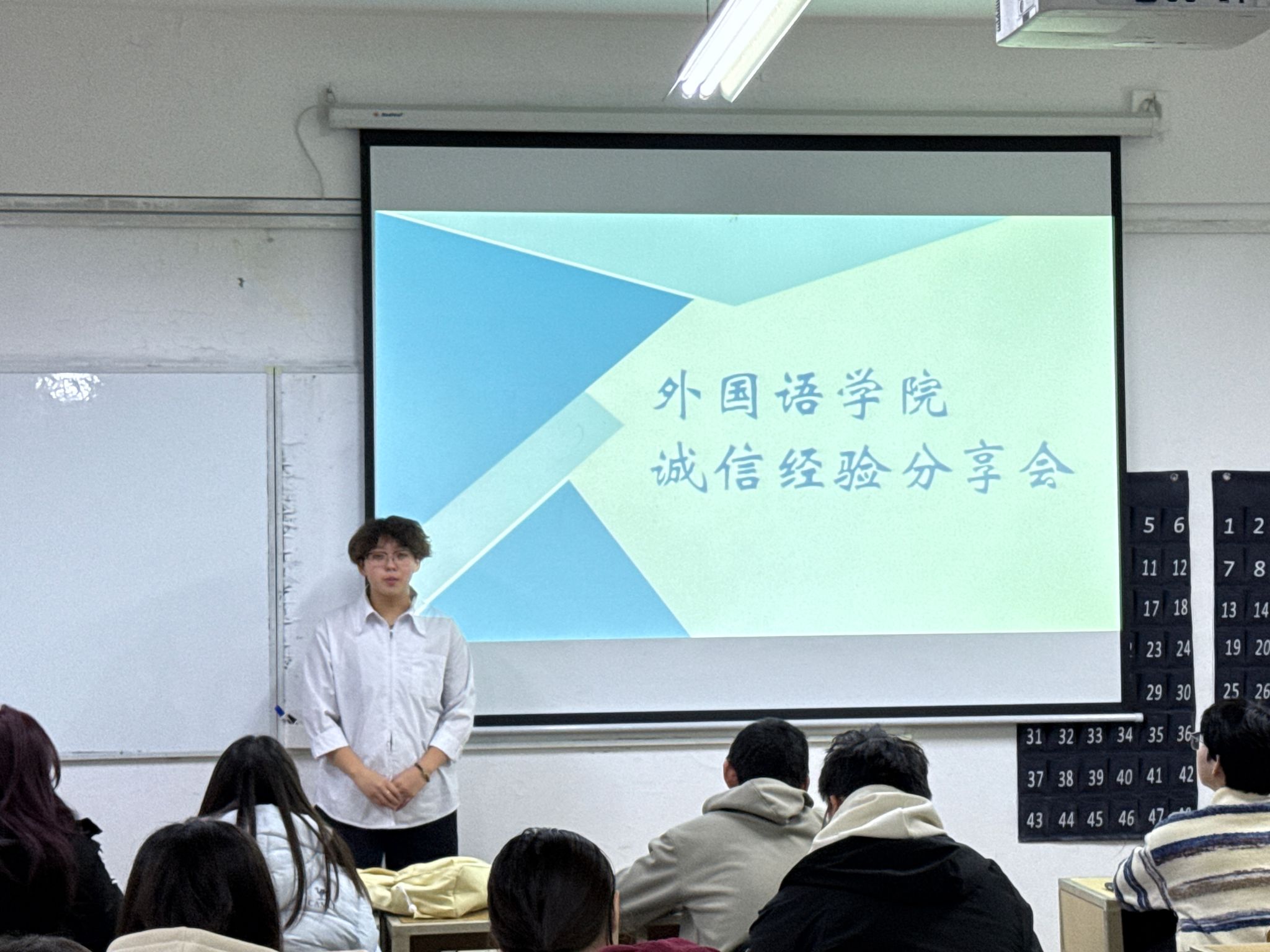 (文/王笑悦)为进一步加强学风建设,强化考风建设,引导学生端正考试态度、恪守诚信准则,12月5日下午,外国语学院于2503教室举办“诚信备考·学长引航”专题分享会。本次活动邀请2024级学生会学联部副部长王艺儒同学,与2025级全体学生围绕诚信备考开展面对面交流。