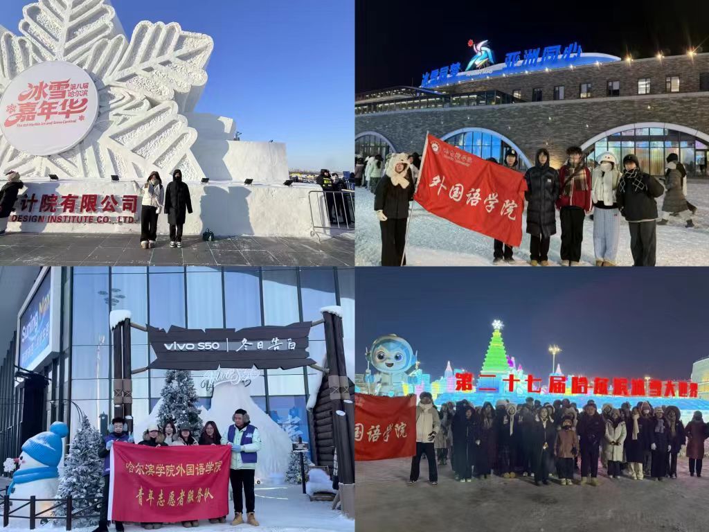 其中,“志愿融冰雪,匠心传冰魂”志愿服务队驻守中央大街,“冰雕凝志愿,学韵传精神”实践调研团队深入冰雪大世界等景区,双线并行、协同发力。志愿者们充分发挥外语专业优势,为国内外游客提供路线指引、信息咨询、多语种翻译等贴心服务,在冰雪景观间传递冰城温度;同时通过问卷调查与实地走访,系统调研景区服务需求,为提升城市文旅服务质量贡献青春力量。
