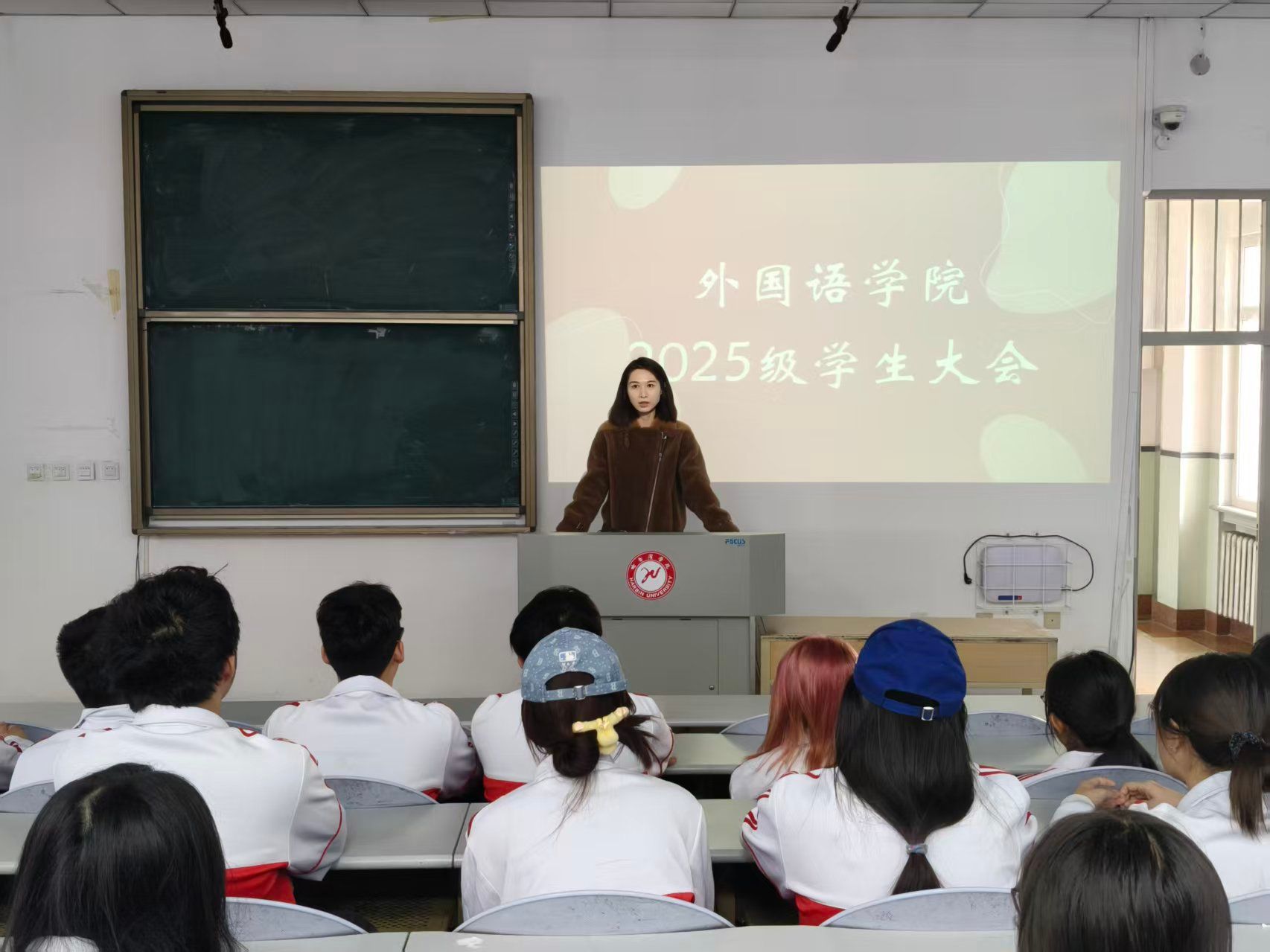 (文/王笑悦)为帮助学生强化安全意识、树立优良学风,尽快适应大一下学期学习生活节奏,3月12日下午,外国语学院在6501教室召开2025级学生新学期年级大会。会议由学工办主任王笑悦主持。