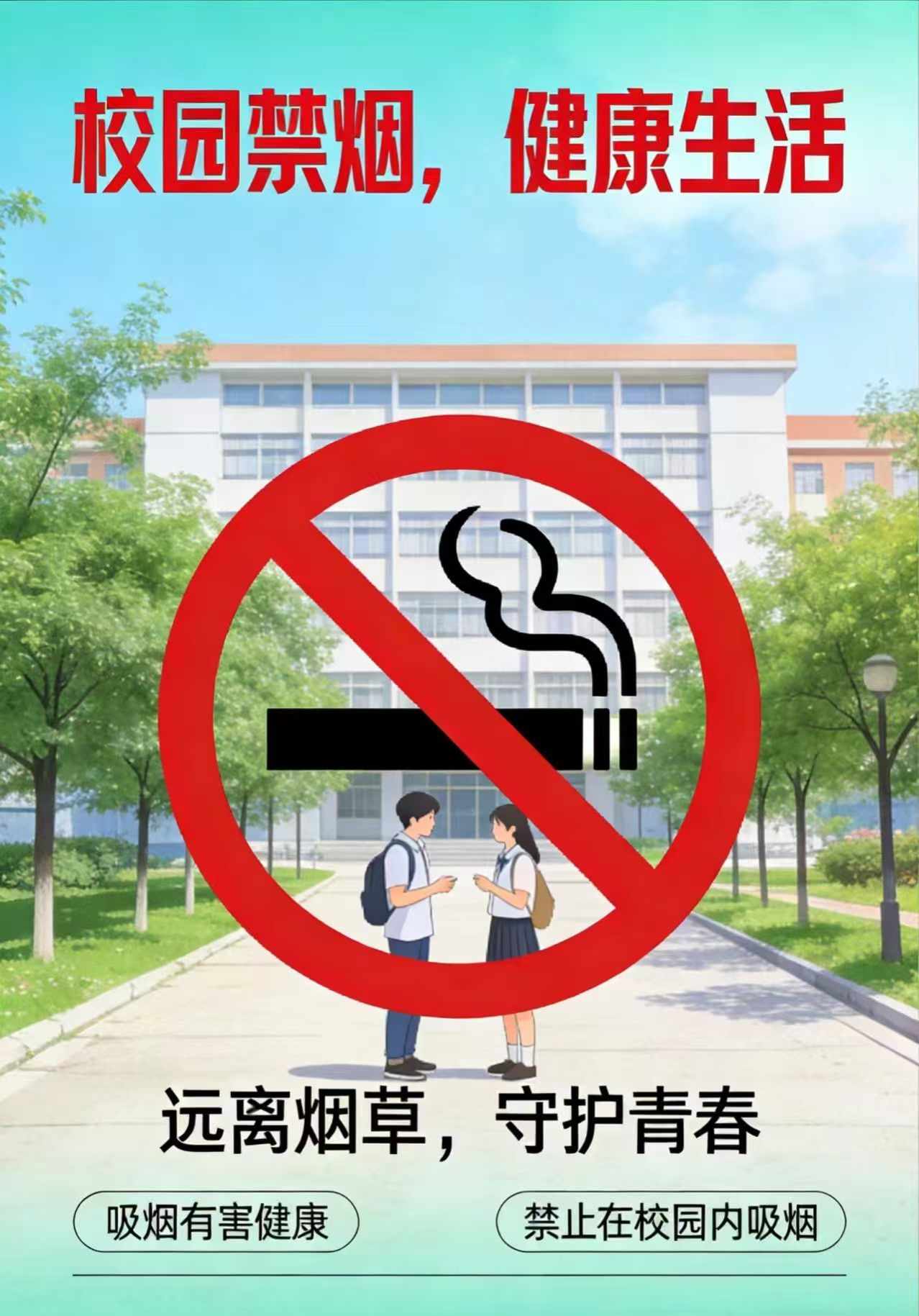25级俄语1班刁洋:以校园教学楼为背景,醒目的禁烟标识覆盖在学生交谈的画面之上,警示师生远离香烟,共同维护纯净健康的校园环境。