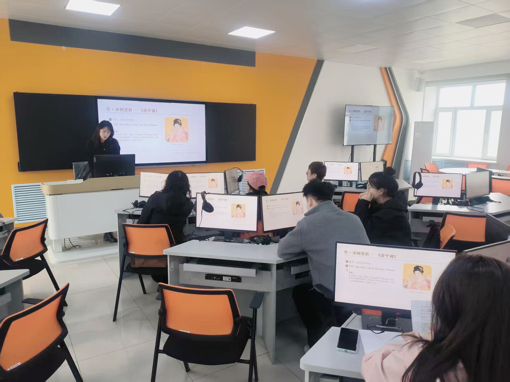 经典译例解读。讲座选取《静夜思》《相思》《清平调》等经典篇目,对比原文与译文,直观呈现许译“押韵整齐、语言优美、意境传神”的特点。同时结合《诗经》名句与现代流行表达对照,展现古典诗词与当代情感、网络用语的奇妙呼应。
