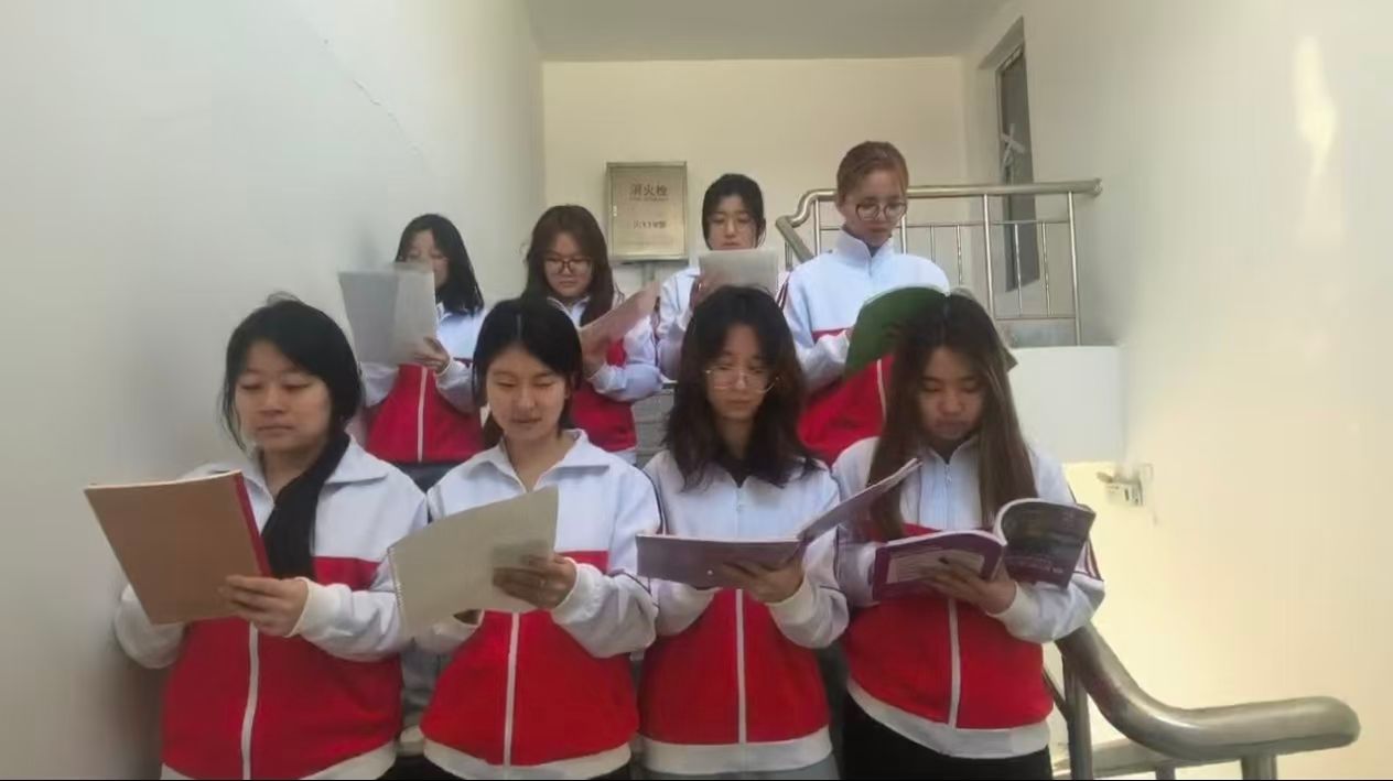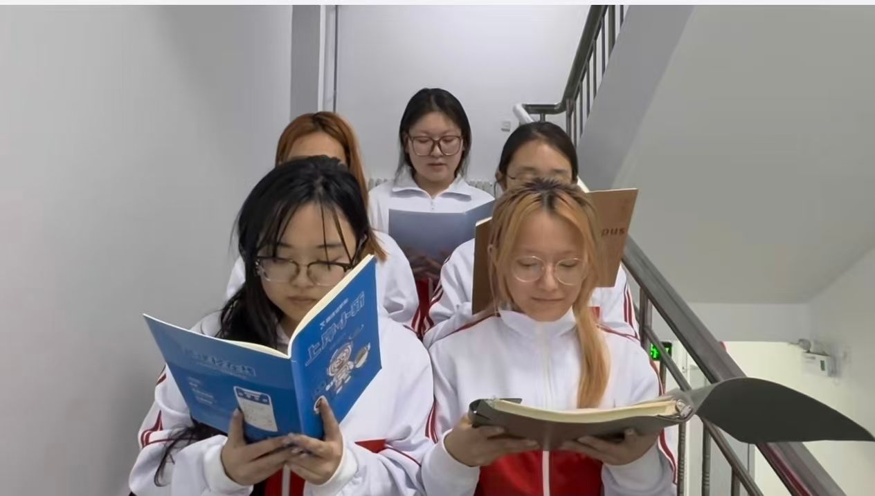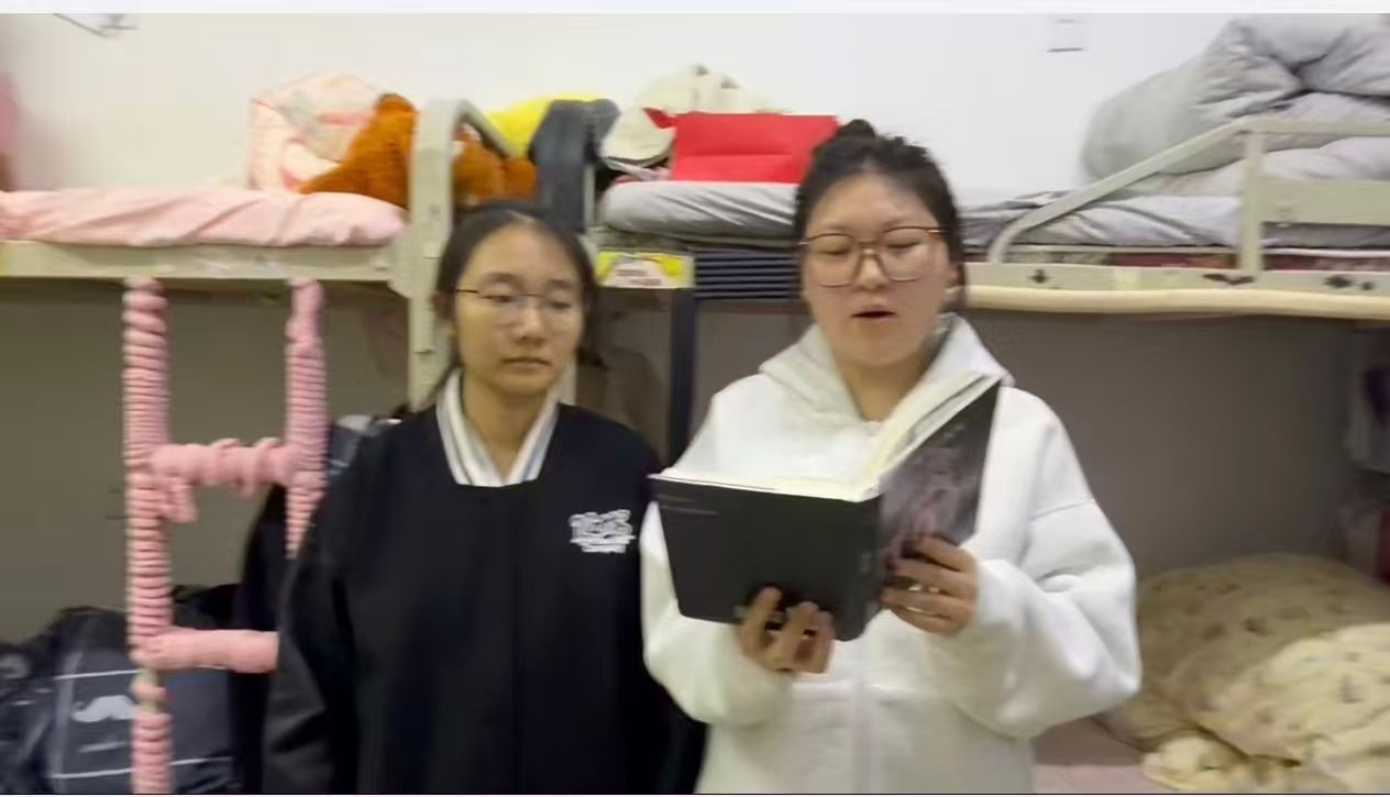 随后,在“诵红色篇章”环节中,各寝室以集体朗诵、双语朗诵等形式,深情演绎了《沁园春·雪》《定风波·栉风沐雨一百年》《红星照耀中国》等脍炙人口的红色经典篇章。同学们或慷慨激昂,或婉转深沉,用中英双语传递革命先辈的不屈意志与家国情怀,一篇篇红色篇章在寝室中回响,不仅营造了浓厚的文化氛围,也让大家在诵读中感悟信仰的力量、汲取奋进的勇气。通过这两个环节,同学们进一步加深了对革命精神的理解,增强了团队协作意识,提升了语言表达与艺术感染力,实现了思政教育与专业学习的有机融合。