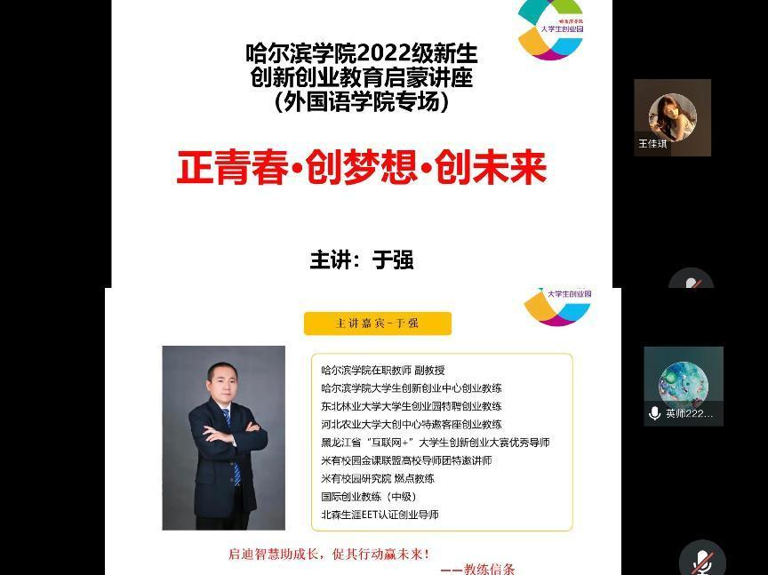 2020年9月6日下午,外国语学院举办新生创新创业教育启蒙讲座,本次讲座由创新创业学院创业导师于强副教授主讲。
