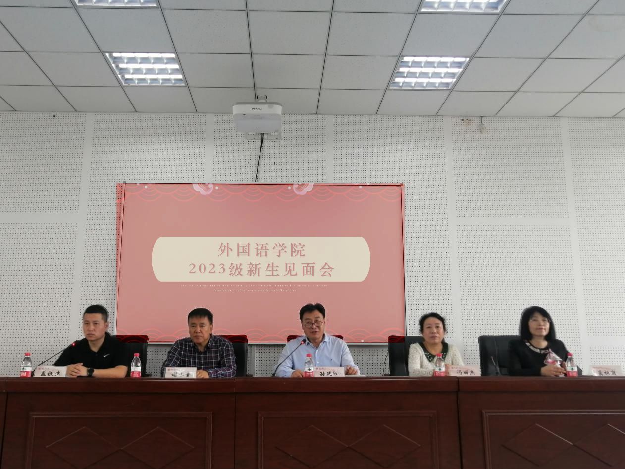 为帮助新生更好地了解、适应并融入大学生活。9月6日下午,外国语学院在3411教室举行新生见面会,热烈欢迎来自天南海北的2023级新生们。外国语学院院长孙延弢,党总支书记冯丽杰、副院长谢小童、副院长龚柏岩、英语系部主任郭明辉、俄语系部主任王黎明、商务英语系部主任陈夺以及全体辅导员老师出席本次会议。会议由外国语学院辅导员老师盖铁生主持,2023级全体学生参加。