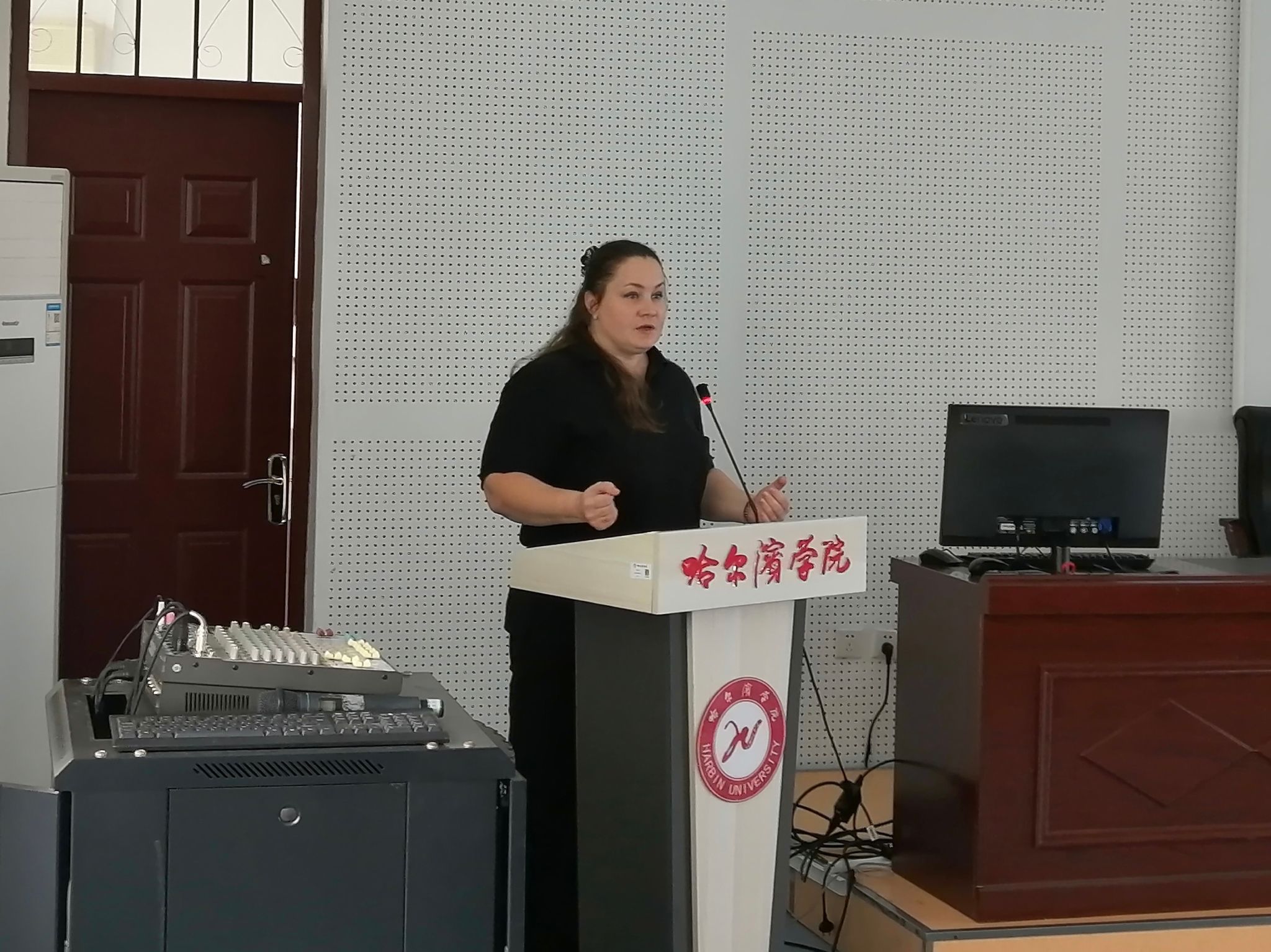 俄语系教师代表Даля和Наталья出席会议并发言,外教老师们表示非常高兴在哈尔滨学院与新生们见面,希望接下来的日子里学生们可以带着热情和兴趣学习外语,并且在学习中要加强听说读写的能力。