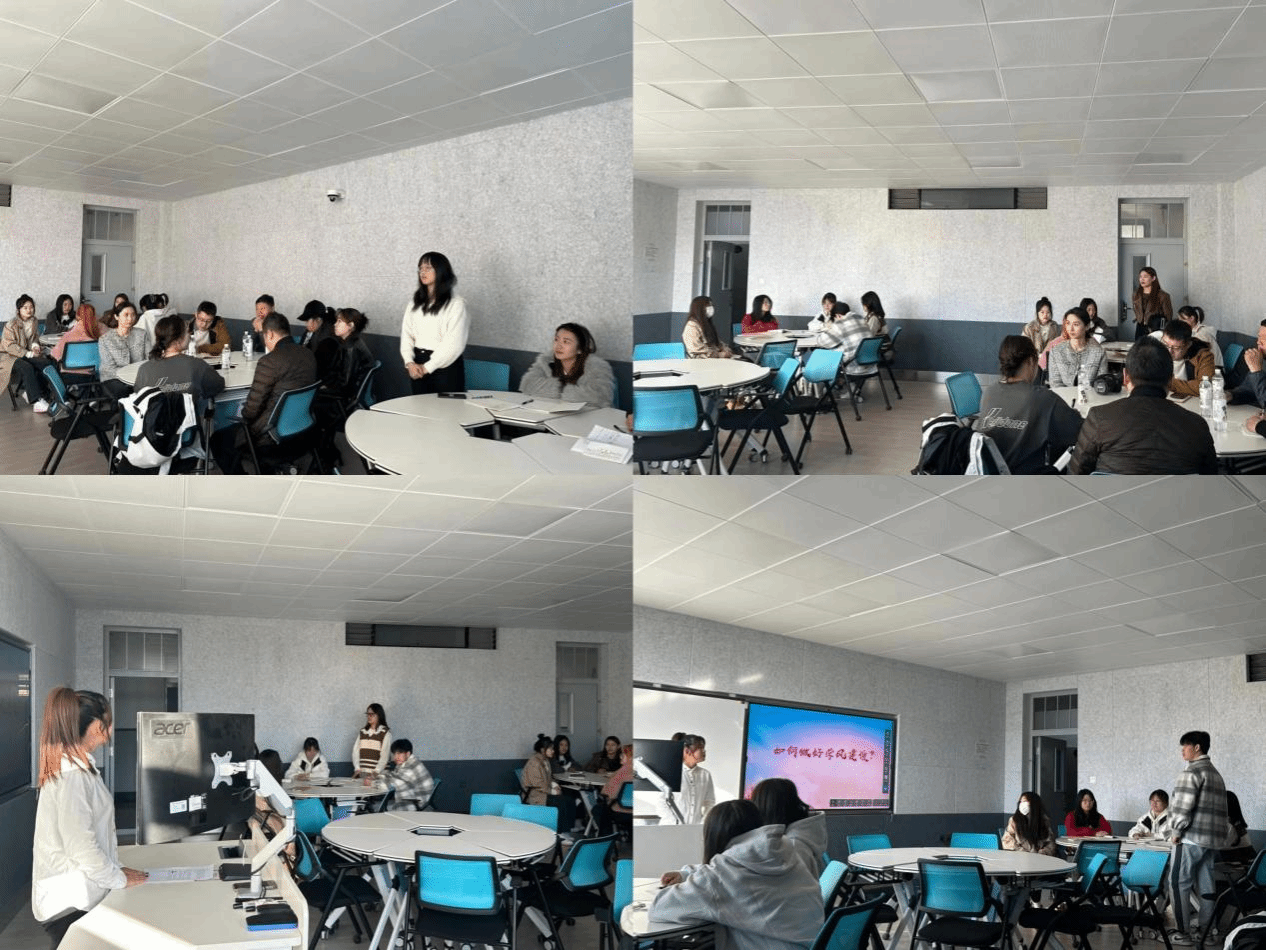 为深入学习贯彻党的二十大精神,全面贯彻习近平新时代中国特色社会主义思想,大力弘扬“秉明德之智,筑学风之行”的学风精神,不断提升我校人才培养质量,努力构建优良学风建设长效机制,外国语学院贯彻落实《哈尔滨学院学风建设实施方案》的总体要求,于10月30日开展2023级商务英语三班学风建设主题班会活动。学生处正处级辅导员丛全喜、学生处舍务管理科科长李丹、学生处易班发展中心科长张满、外国语学院全体辅导员及2023级商务英语三班全体学生参加。