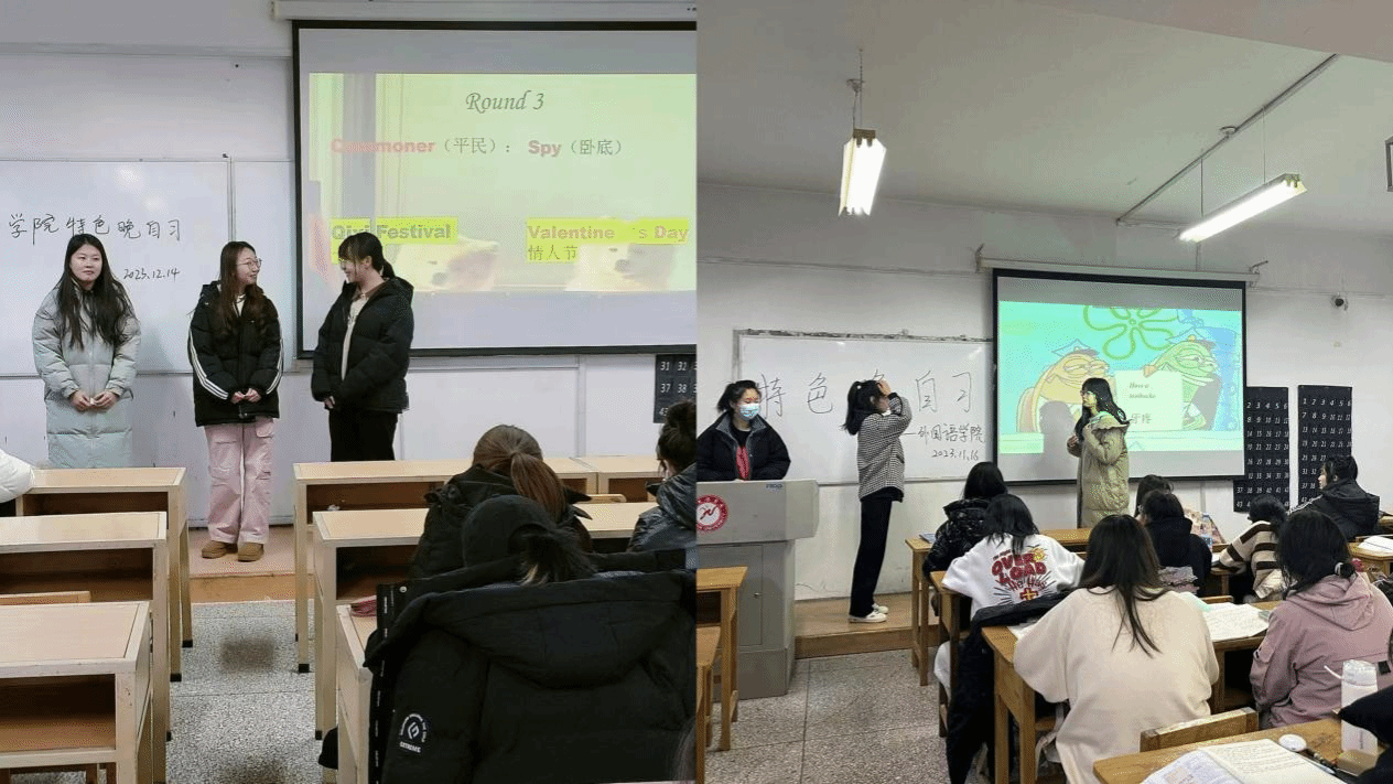 为了扎实推进学风建设,培养大学生自我学习能力,营造浓厚的学习氛围,充分调动学生的学习积极性,促进学生全面发展,外国语学院贯彻落实学校学风建设相关要求,推出特色晚自习活动。本学期的特色晚自习活动充分考虑学生的学习实际,内容丰富多样,注重学生的个性化发展,调动了学生们的学习热情,给同学们提供了一个展现自我、挑战自我的平台。