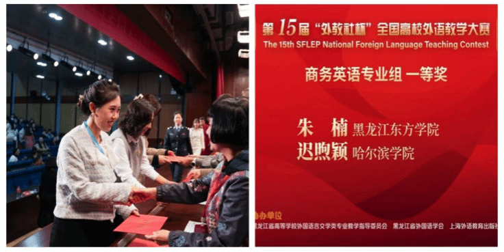 教学能力是人才培养质量提升的根本保障。通过内培外引,不断优化师资队伍学历结构;通过研修短训,提升教师教学能力和教学成效。每年约有80人次教师参加各类教学与学术研修班。近几年,有6位教师到企业挂职锻炼。组织40余次校内教学与学术交流研讨活动。2023年,迟煦颖老师获第八届全国高等院校英语教师教学基本功大赛二等奖,2024年又荣获第十五届“外教社杯”全国高校外语教学大赛(商务英语类专业组)黑龙江赛区一等奖,梦红老师获这项赛事(英语类专业组)黑龙江赛区二等奖。