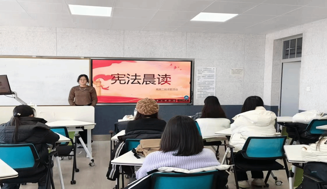 学院利用早读时间,组织学生开展宪法晨读活动,选取宪法部分章节进行朗读。同学们在朗朗书声中感受宪法的庄严与权威,进一步加深了对宪法条文的理解和记忆。各班级还召开了宪法主题班会,由班长带领同学们深入学习宪法的基本内容、重要意义和精神实质。通过小组讨论等形式,引导同学们思考宪法在日常生活中的体现和应用,激发同学们学习宪法的兴趣和热情。在本次宪法学习活动中,我院借助教育部全国青少年普法网直播资源,组织师生集中观看学习。直播中专业的讲解、生动的案例剖析,使学生们深入领会宪法内涵与重要意义。