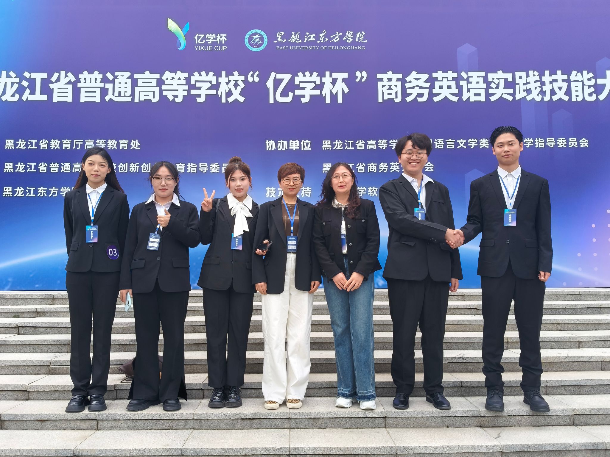这一成绩的取得,展现了我校教师在商务英语教学领域的专业实力和指导能力,彰显了学校、教务处及学院在“一高·两有·三强”应用型人才培养、“语言+”教学改革等方面协同推进的显著成效。外国语学院将继续紧跟新文科融合发展新趋势,教学赛用结合,深化校企合作,优化人才培养模式,为龙江和哈市数字经济高质量发展培养更多具有国际视野、数字素养和创新能力的复合型商务英语人才。