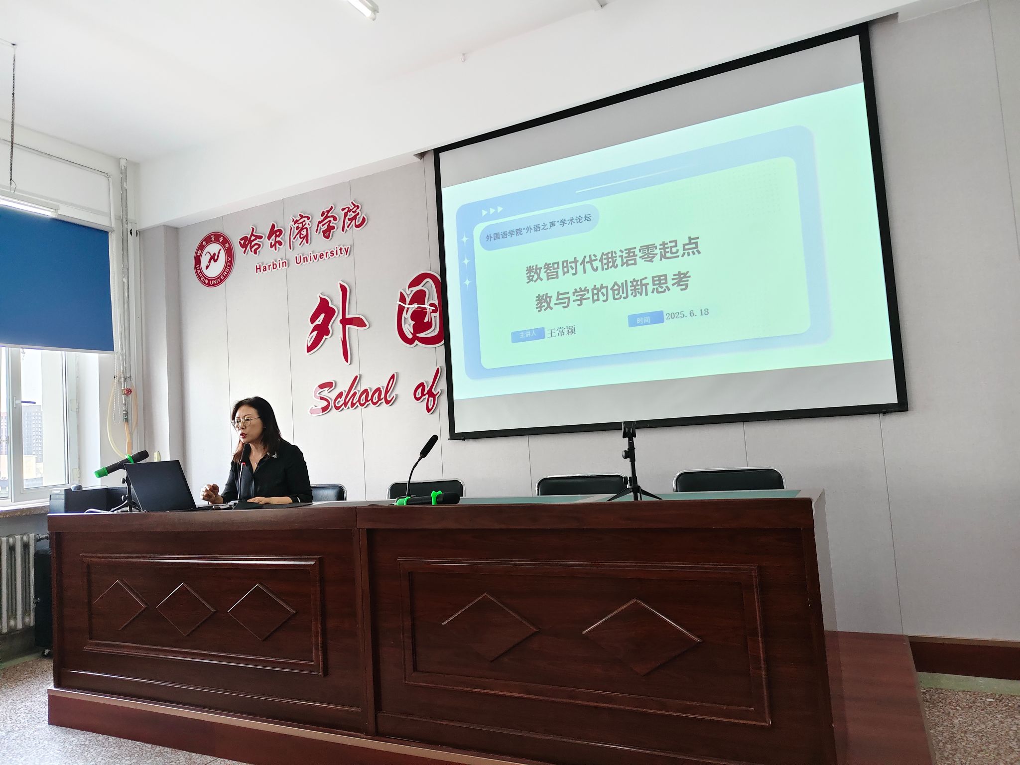 2025年6月18日下午2:00,俄语系全体教师和2024级学生齐聚1527会议室,共同聆听了王常颖老师主讲的“外语之声”学术论坛系列讲座(第35讲)。本次讲座主题为“数智时代俄语零起点教与学的创新思考”。