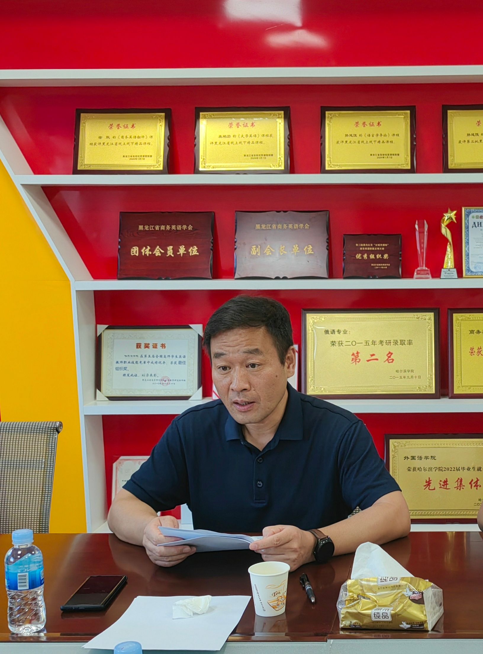 孙钊认真听取汇报,与学院班子成员进行深入细致交流,对外国语学院的发展成效给予了肯定,并就“十五·五”期间的工作提出了明确要求。他指出,“十五·五”事业发展规划编制要以目标和问题为导向,既要脚踏实地,又要跳起摸高。他强调:第一要找准坐标,透彻清晰分析出外语学科专业发展所面临的挑战和机遇,做到危中见机遇,危中求发展。要紧密对接学校 “十五·五”整体发展战略与办学目标,结合外语学科发展趋势,明确学科建设的重点领域与突破方向,确保学科建设与学校整体规划同频共振。第二,找准办学特色。专业建设与人才培养需紧密结合省、市经济社会发展需求和地方特色,聚焦地方产业发展对人才的实际需要,积极探索“外语+”的复合型人才培养路径,为地方发展输送优质人力资源。第三,夯实国际交流合作成效。中俄国际交流项目要成为提升学校开放式办学水平的重要抓手,为培养具备国际视野的人才搭建重要桥梁。第四,强化党建引领作用。坚持党建与业务工作深度融合,以高质量党建引领学院事业高质量发展。第五,要提升学生能力和综合素质。充分体现教育教学活动的价值引领,注重培养学生的实践能力和创新思维,增强学生就业竞争力。第六,服务地方经济社会发展。应利用语言优势和专业特色,为地方对外文化交流、冰雪文化传播等提供有力支持。