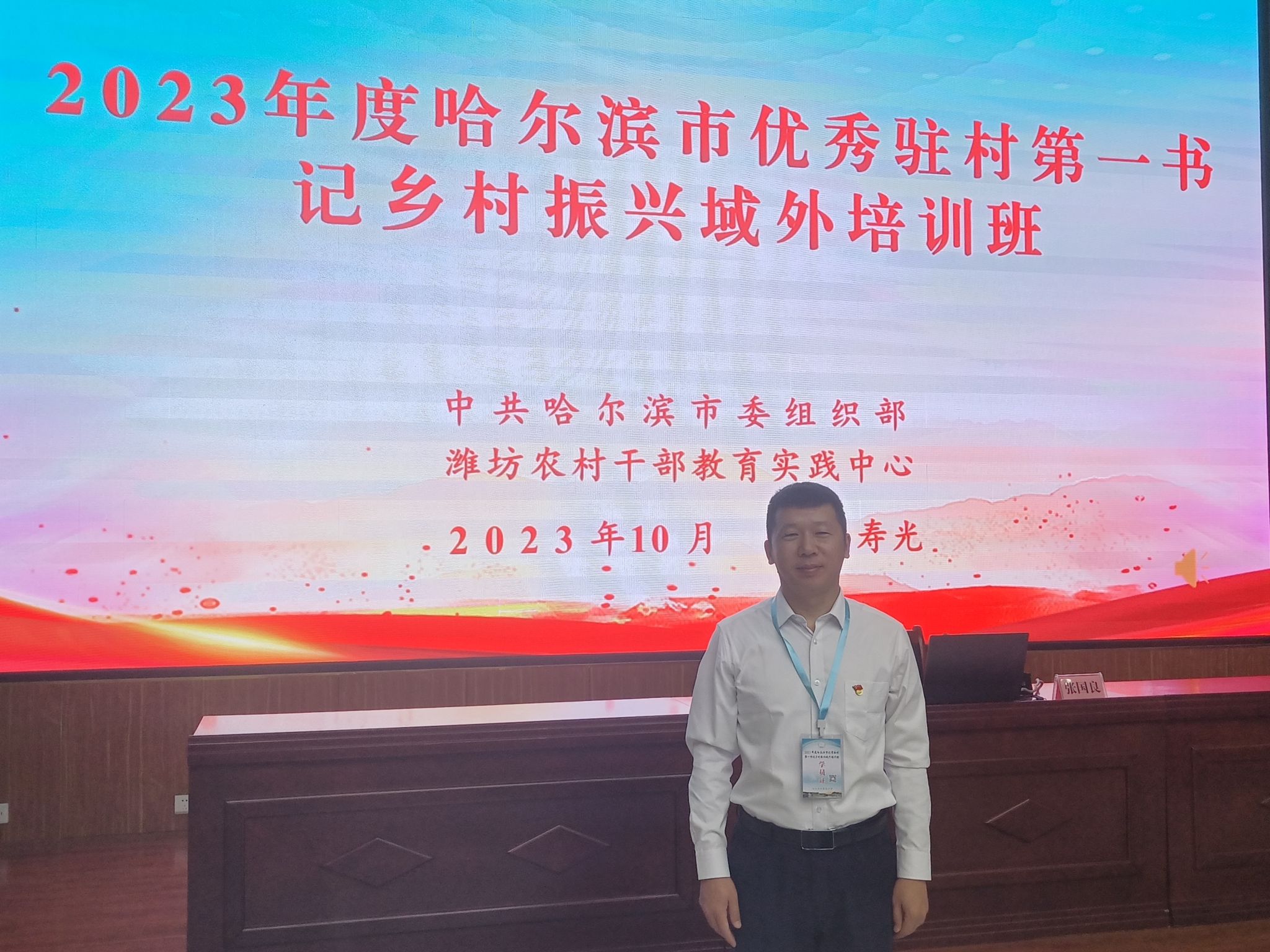 (文/张志涛)10月16日至22日,哈尔滨市委组织部从105家市直驻村工作队中选派40名驻村第一书记到山东潍坊农村干部教育实践中心,参加2023年度哈尔滨市优秀驻村第一书记乡村振兴域外培训班,我校驻村第一书记张志涛参加培训。