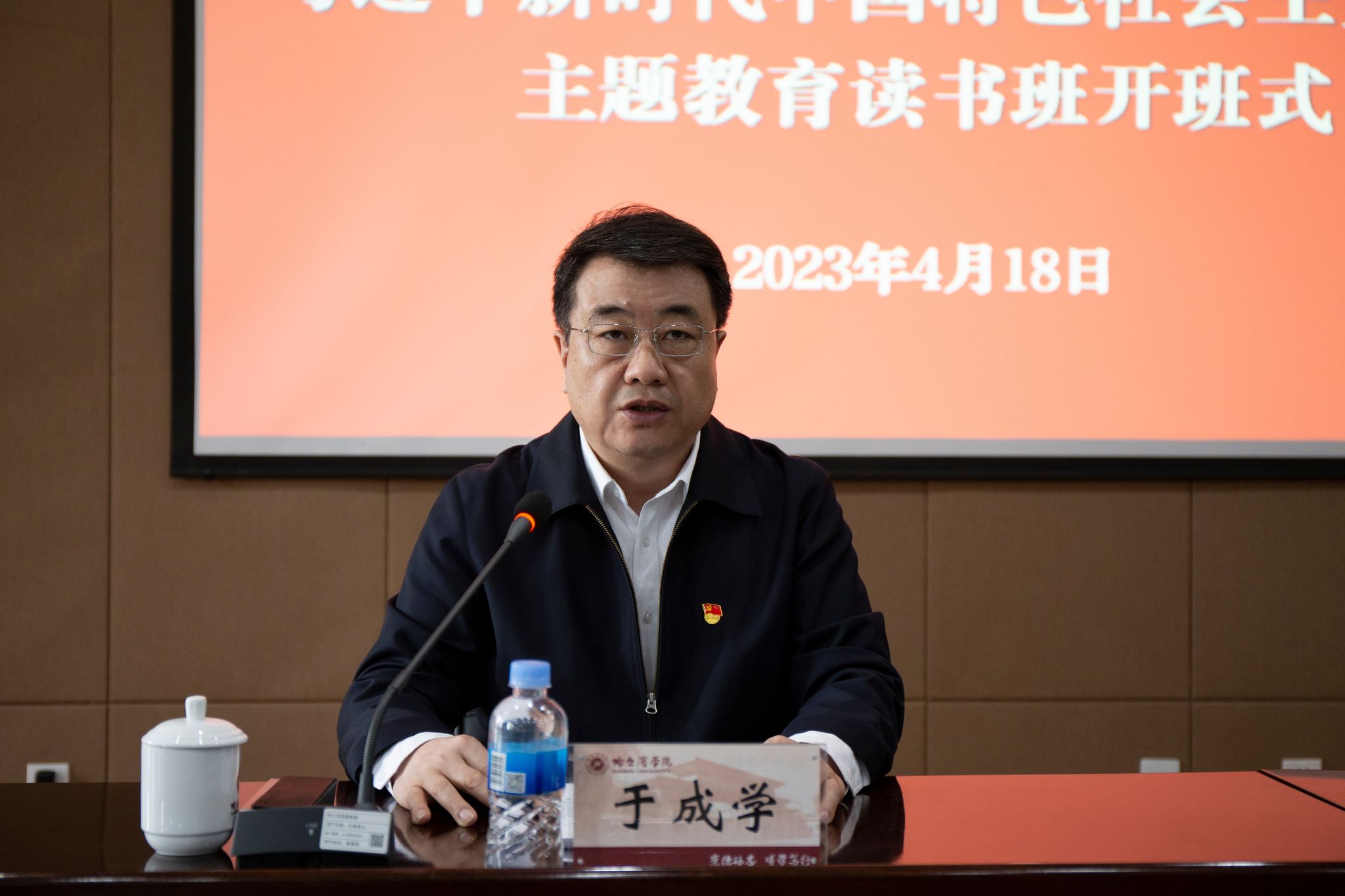 于成学强调,全校党员领导干部要站在政治和全局高度,切实增强用党的创新理论武装头脑的思想自觉和行动自觉,认真落实主题教育关于理论学习的工作要求,切实把学习成果转化为推动学校高质量发展的生动实践,以应用型大学建设的实际成效,把学校建设成为践行“两个确立”的忠实实践地。一要坚持原原本本学,真正做到以学铸魂。要认真研读党的二十大报告和党章、《习近平著作选读》(第一、二卷)等规定书目,学习习近平总书记对东北地区、黑龙江省以及对高等教育、科技、人才等领域的重要讲话重要指示批示精神,坚持读原著学原文悟原理,在学懂弄通做实上下功夫,不断增强忠诚核心、维护核心、看齐核心的政治自觉和行动自觉,不断增强政治判断力、政治领悟力、政治执行力,切实做到把“两个维护”融入思想中、落到行动上。二要坚持融会贯通学,真正做到以学增智。要深刻把握习近平新时代中国特色社会主义思想的世界观、方法论及贯穿其中的马克思主义立场观点方法和宝贵精神品格。大力弘扬马克思主义学风,深刻领悟习近平新时代中国特色社会主义思想科学体系的精髓要义,准确把握实践要求,坚持全面系统、及时跟进,多思多想、学深悟透,知行合一、学以致用,自觉做思想建党和理论强党的先行者,自觉做共产主义远大理想和中国特色社会主义共同理想的坚定信仰者和忠实实践者。三要坚持对标对表学,真正做到以学正风。要牢牢把握主题教育总要求和工作目标,切实解决好六个方面突出问题,把理论学习、调查研究、推动发展、检视整改、建章立制贯穿始终、一体推进。要坚持以党性立身、立业、立言、立德,始终保持共产党人政治本色,当好良好政治生态和社会风气的引领者、营造者、维护者。要进一步筑牢拒腐防变防线,从严落实全面从严治党任务要求和党风廉政建设责任制,以优良作风带动形成风清气正的校风教风学风。要深刻领悟新时代党的建设新要求,切实增强自我革命的政治自觉,努力创造经得起历史、实践和师生群众检验的业绩。四要坚持联系实际学,真正做到以学促干。要在推动学校事业高质量发展上见行动、求实效,把开展理论学习活动同贯彻落实党中央、省委市委决策部署结合起来,同推动本单位本部门中心工作结合起来,以强化理论学习指导发展实践,以深化调查研究推动解决发展难题。要在增进民生福祉上见行动、求实效,解决好师生群众的操心事、烦心事、揪心事,让师生群众感受到实实在在的变化。要在防范化解风险上见行动、求实效,牢固树立和全面践行总体国家安全观,不断增强斗争精神和斗争本领,坚定维护校园安全稳定。