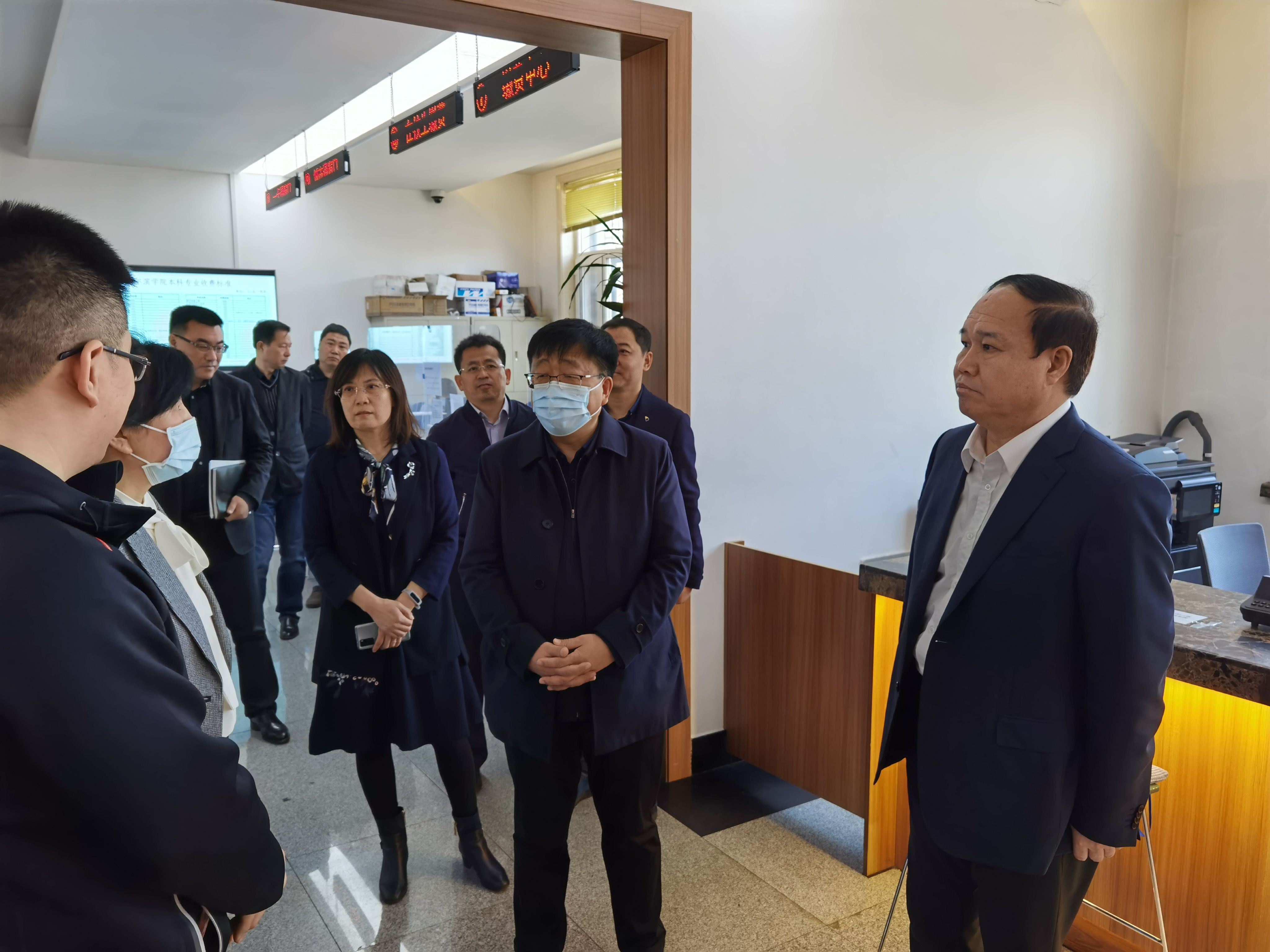 冯伟泉一行实地考察了学生服务中心,对我校积极推进“一网、一门、一次”改革,建立大学生服务中心,为学生提供集约化智能化服务给予充分肯定。在学生第一食堂,冯伟泉与学生亲切交流,并详细了解学校后勤管理处引进美团开设食堂专项预订送餐服务,认为“学生需要,学校做到”服务套餐包做法好。调研过程中,冯伟泉听取了党委书记冯延平关于学校开展党史学习教育特色做法和办实事亮点的工作汇报,并就学校对接省教育厅为学生办实事、为高校解难题“十大行动”落实情况提出了指导意见。