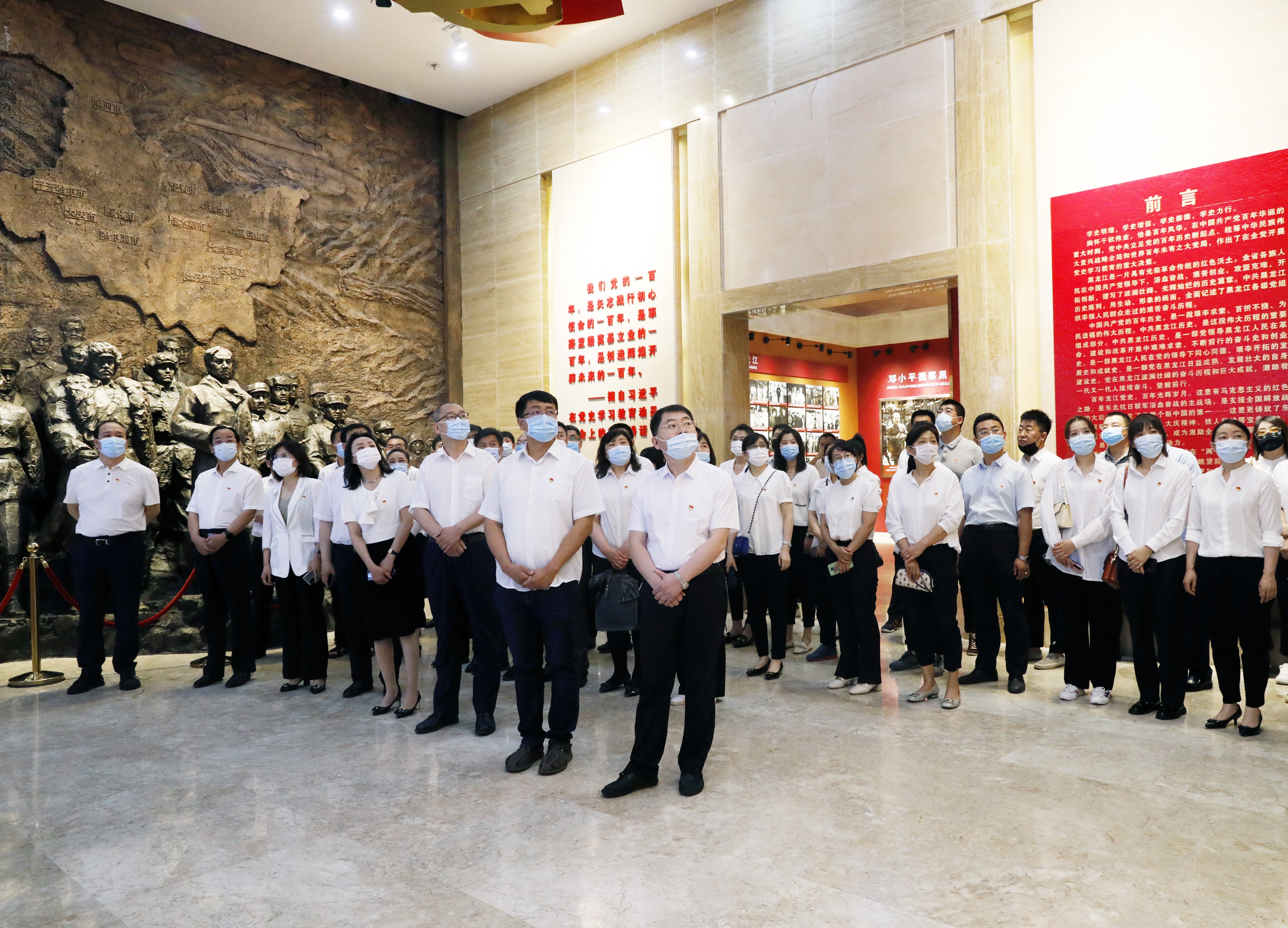 为深入开展党史学习教育,切实做到学史明理、学史增信、学史崇德、学史力行,6月24日上午,学校领导、党委委员,党委组织部、党委宣传部、党政办公室、纪检监察室等党务工作部门同志,学校各二级学院党务工作者及党员代表,一行70余人来到中国共产党黑龙江历史纪念馆参观学习,回顾百年党史,缅怀革命先烈,重温入党誓词,传承红色基因,筑牢初心使命,凝聚奋进力量。