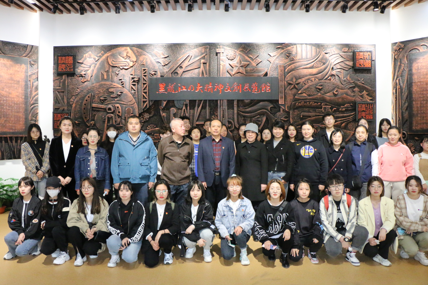 参观中,艺术与设计学院学生热情细致地为全体师生党员进行了讲解。全体师生通过参观历史文物和艺术作品、影像资料,聆听专题讲解,深入学习了“东北抗联精神”“北大荒精神”“大庆精神”和“铁人精神”,接受精神洗礼和理想升华,深刻领会了黑龙江“四大精神”的内涵实质,切实感受中国共产党在龙江大地上的浴血奋战史、艰苦创业史、改革创新史。