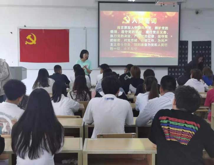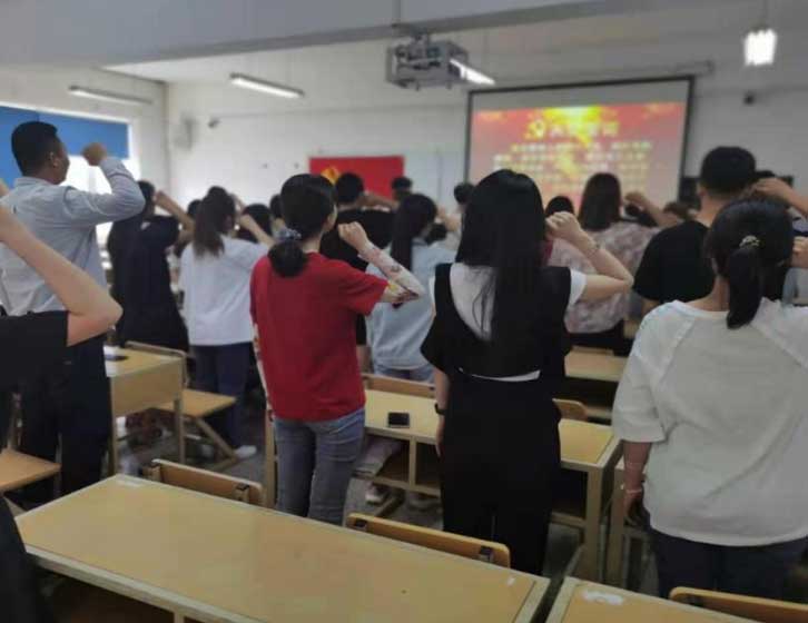 为进一步丰富党史学习教育内容,持续深入推动党史学习教育,加强对新党员党性教育,更好传承红色基因,2021年6月21日中午12:00,信息工程学院(软件学院)组织学生党支部在2533教室开展新党员入党宣誓仪式,学生党支部书记魏梦菲和全体2021年春季新党员参加了此次活动。