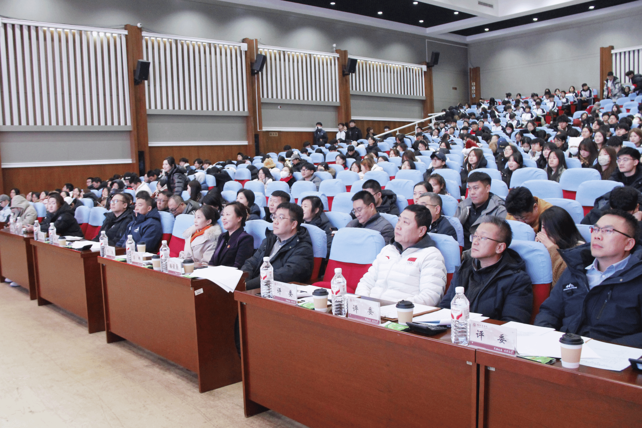 (文/李丹)12月3日,学校在图书馆报告厅,举办第四届“一站式”学生社区“文化、学风双优良”寝室评选活动。校党委副书记李娜出席活动。校长助理潘俊豪、学生处处长于迪、相关职能部门负责人,各二级学院党委(党总支)书记、副书记,全体辅导员及师生代表参加活动。后勤管理处处长王峰、保卫处处长李家强、教务处处长王克朝、学生处正处级辅导员张玉丹、党委宣传部副部长朱明担任评委。