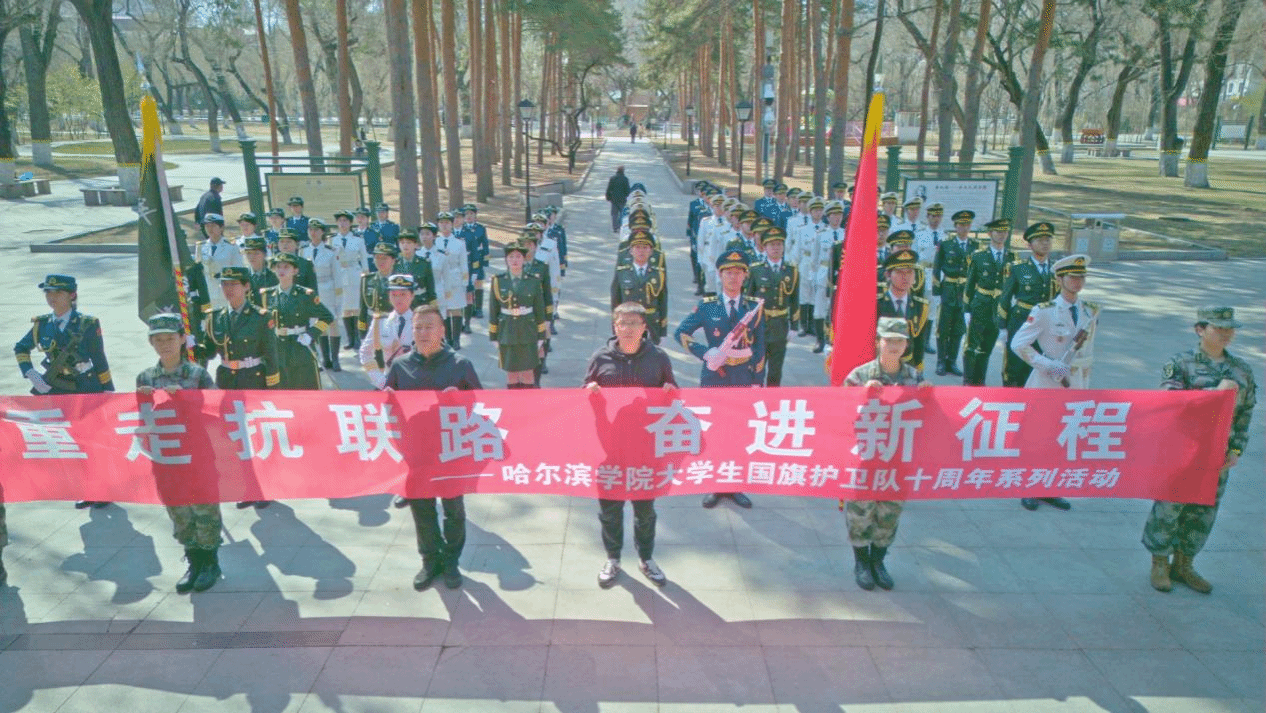 (文/李赫鹏)为传承红色基因,厚植爱国情怀,4月19日上午,在哈尔滨兆麟公园,我校大学生国旗护卫队举行了“重走抗联路 奋进新征程”主题活动之瞻仰李兆麟将军纪念碑,为我校大学生国旗护卫队成立10周年主题系列活动拉开序幕。学生处指导教师、国旗护卫队80名学生代表参加了活动。