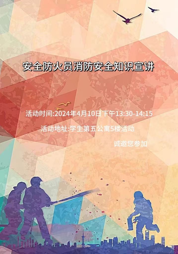 为进一步增强同学们的消防安全意识,筑牢安全防线,提升广大师生应对突发事件的应急处置能力,切实加强公寓安全建设,舍务管理科于2024年4月10日下午13时30分举办消防安全知识讲座活动。
