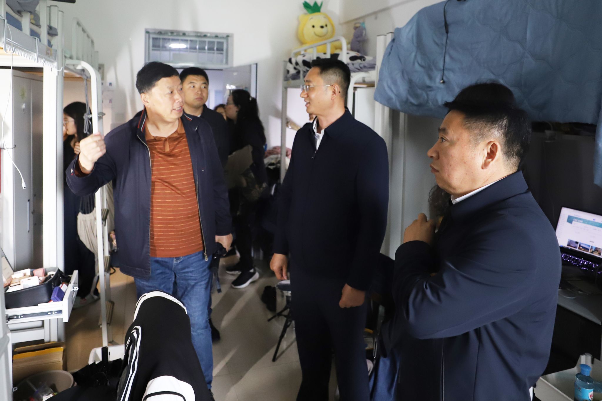 座谈后,一行人前往我校大学生心理发展中心、学生第七公寓参观调研,双方在现场调研的过程中,就各学校不同的学生公寓建设等情况充分交换了意见,就目前面临的难点和问题进行了深入细致的探讨交流,对彼此关心问题进行了坦诚的沟通分享。