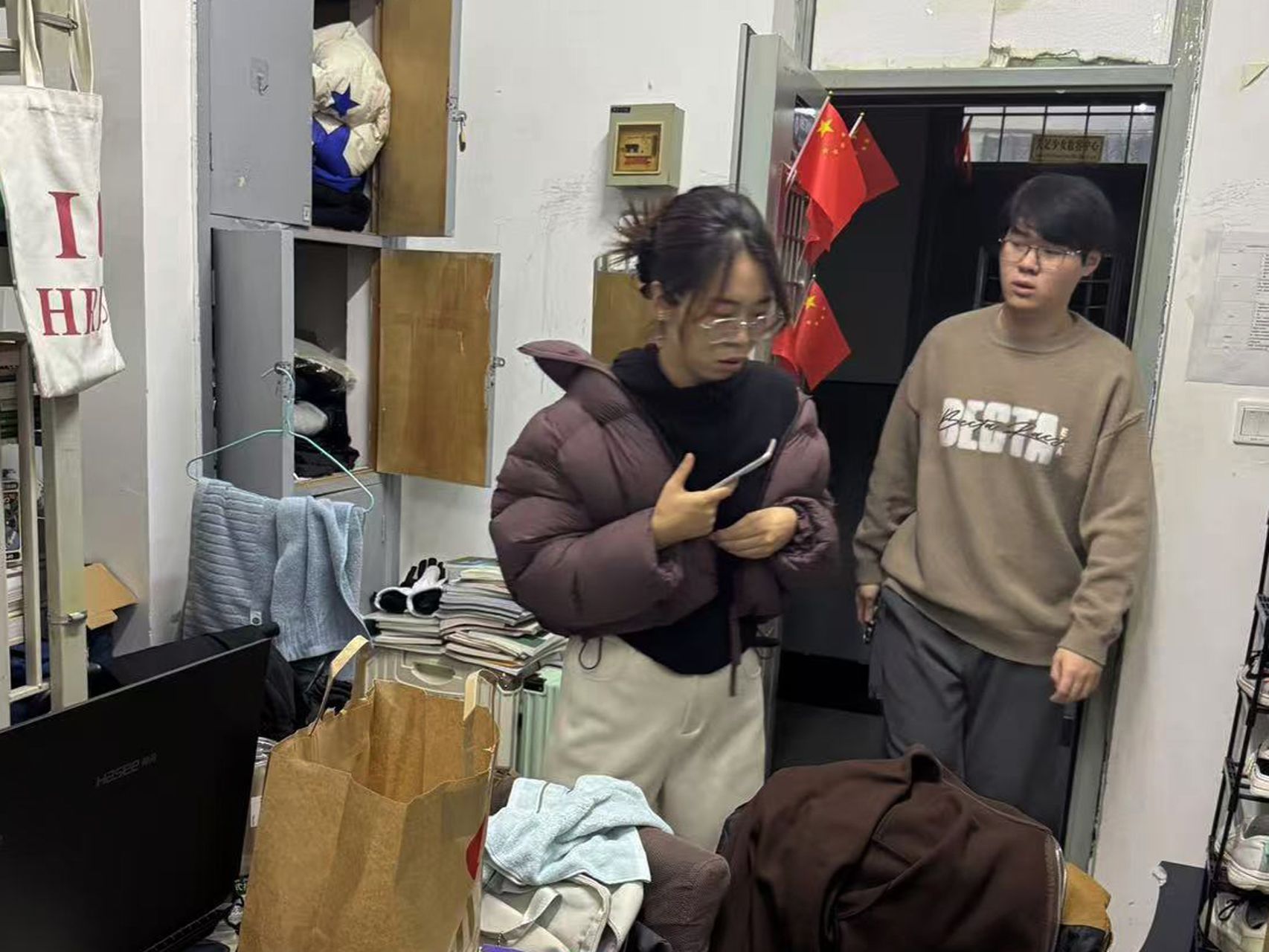 在安全检查过程中,相关领导和辅导员们围绕寝室内使用违规电器、明火、吸烟、管制刀具等安全方面,从学生公寓公共区域到学生寝室内部逐项排查安全隐患。