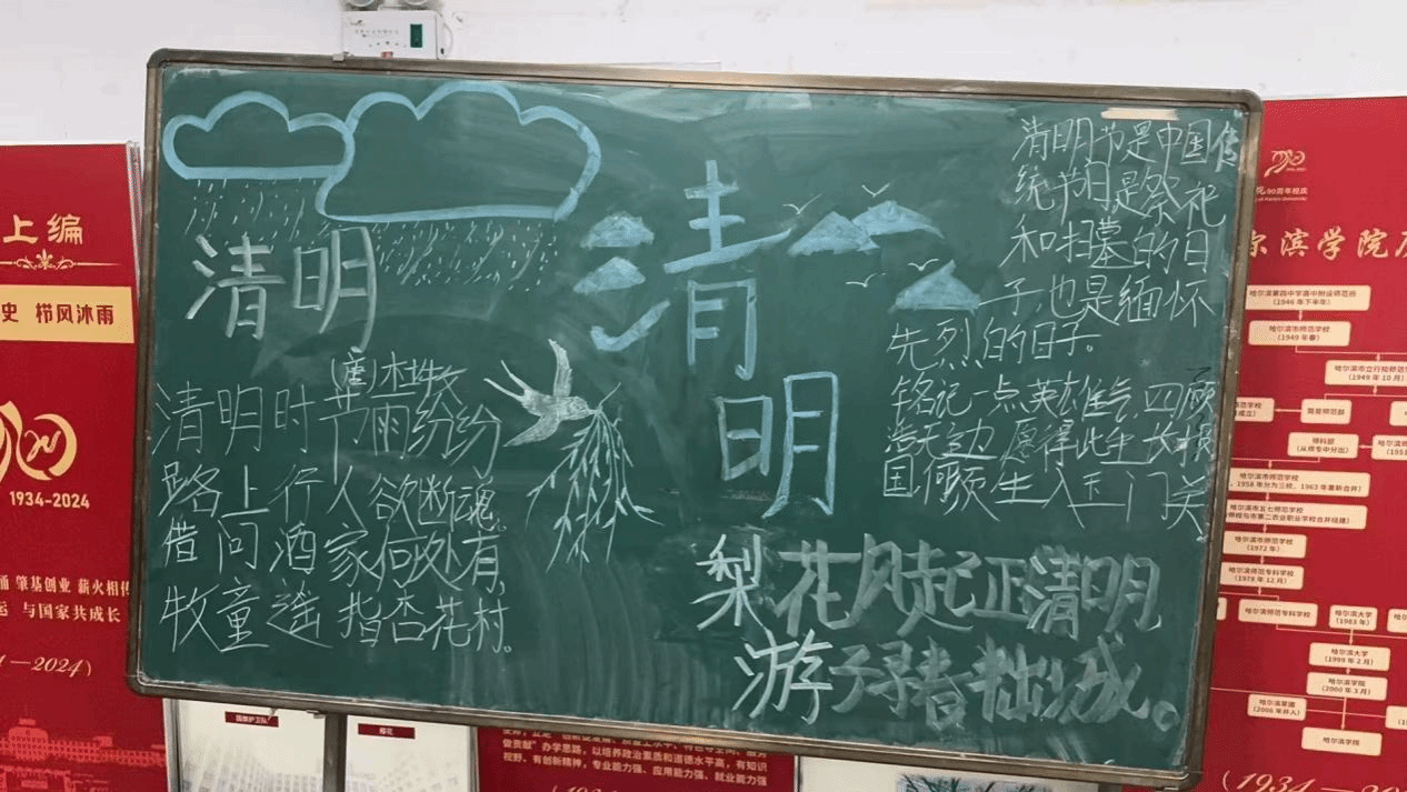 “万物生长此时,皆清洁而明净,故谓之清明。”清明,不只是雨落纷纷的时节,更是承载着厚重情感与文化的符号。当清明的微风轻轻拂过校园,公寓板报也悄然换上了与清明相关的主题,用别样的方式讲述着这个传统节日的内涵。