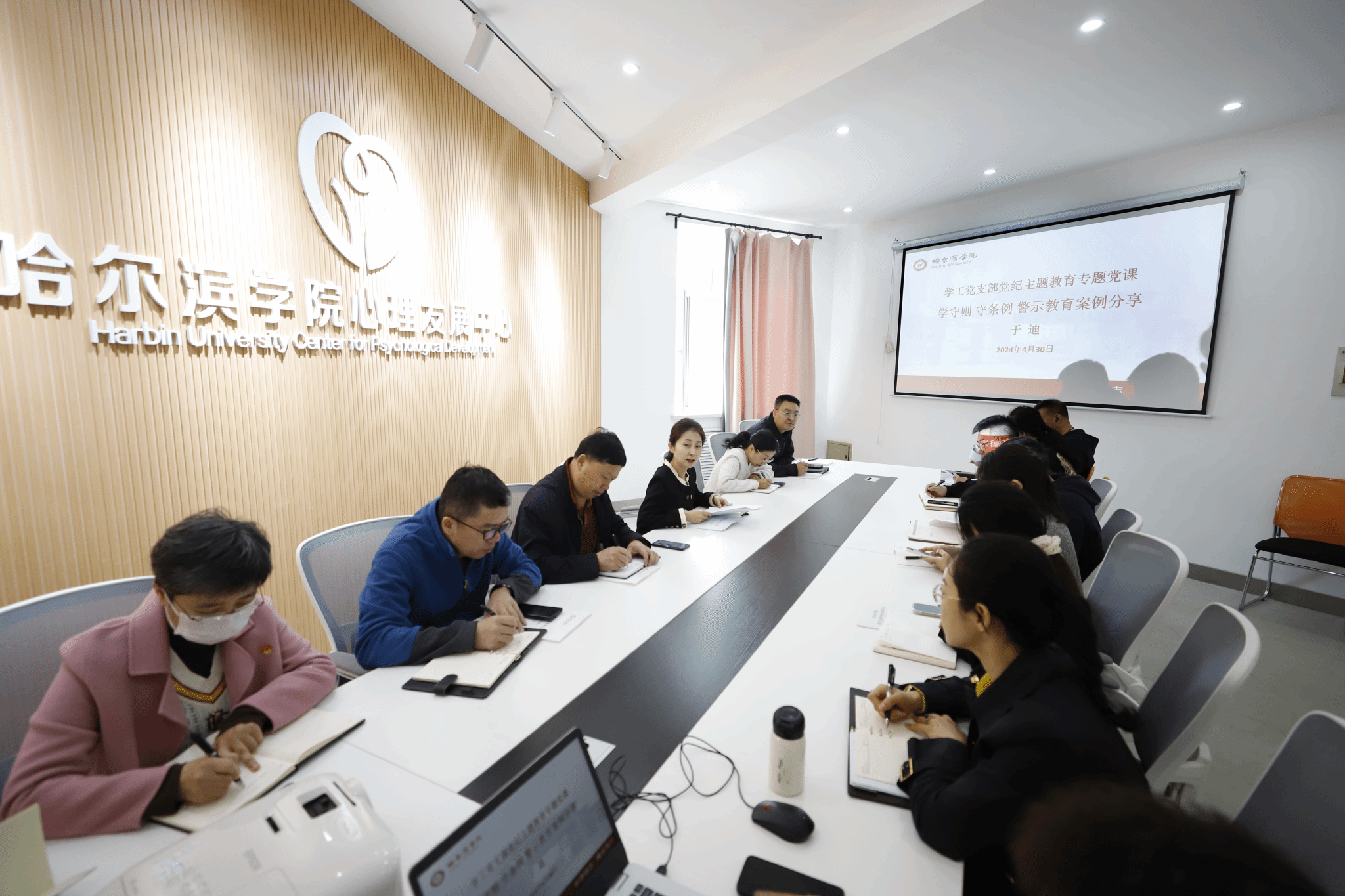 (文/张强)4月30日上午,学工党支部在一号教学楼心理中心会议室召开党纪学习教育纪律党课。学工党支部书记于迪主持会议并讲授党课,支部全体党员参加党课学习。