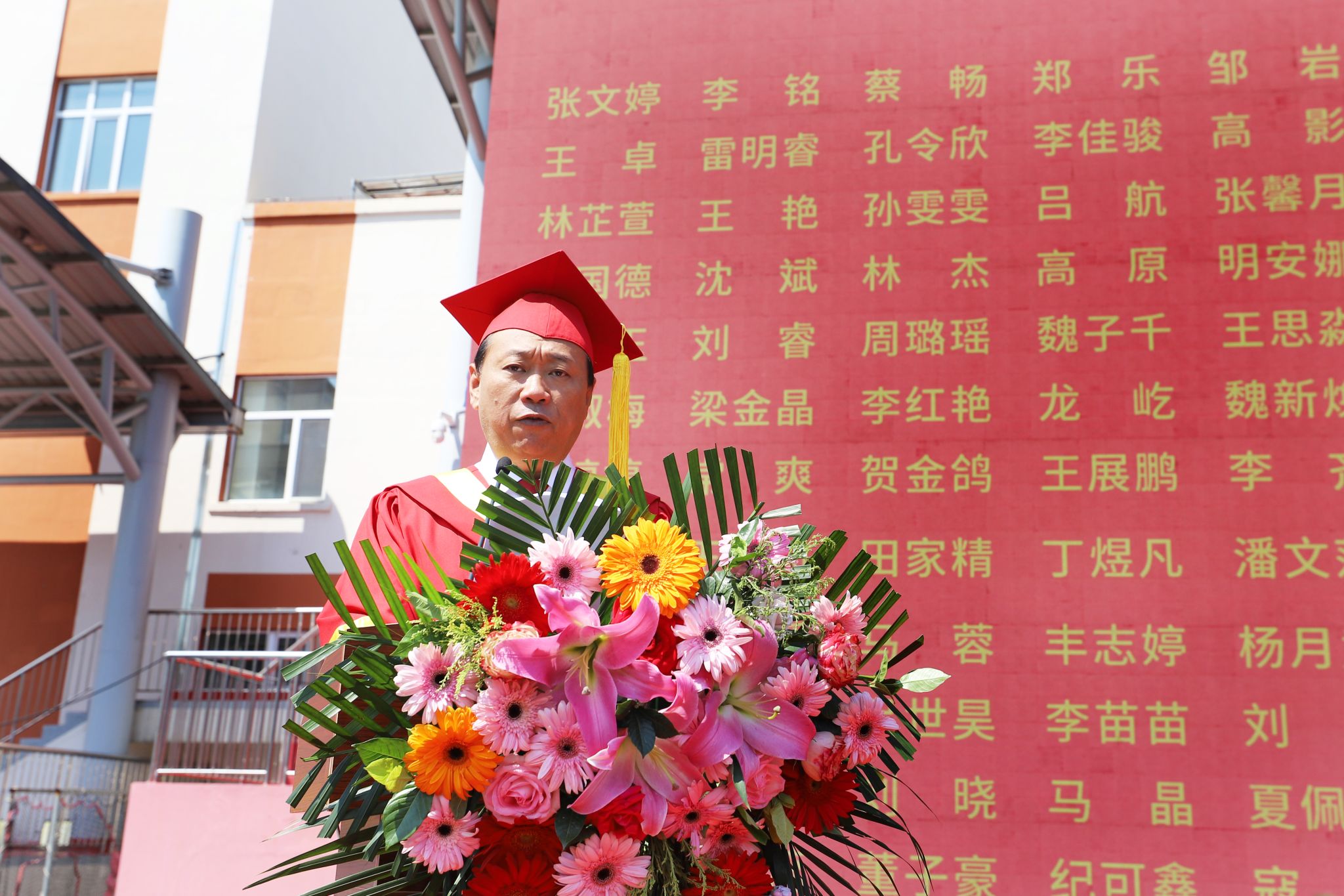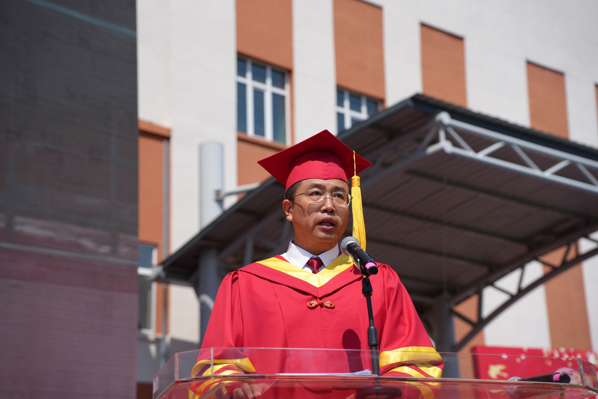 于成学在致辞中指出,2024届全体毕业生要以坚定的信心、饱满的热情、奋发的姿态,在以中国式现代化全面推进中华民族伟大复兴的壮丽征程中,尽情演绎属于你们的时代传奇。无论你们走多久、走多远、飞多高,母校永远是你们最坚强的后盾,你们永远是母校永久的牵挂与骄傲!