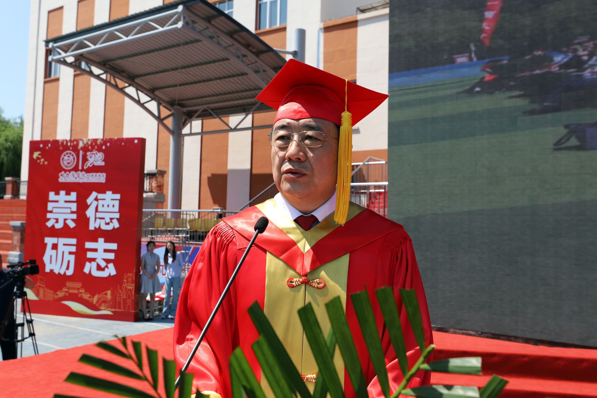 (文/卢涛)6月16日上午,学校在田径运动场隆重举行2024届学生毕业典礼暨学士学位授予仪式。校长、党委副书记于成学,党委副书记李娜,党委委员、副校长于少鹏、吴旭峰,党委委员、组织部部长丛军、宣传部部长李铁岩、统战部部长刘洪达出席毕业典礼仪式。各二级学院党政负责人、相关职能处室负责人、全体学工干部、教师代表、家长代表、2024届毕业生代表及在校生代表参加毕业典礼仪式。毕业典礼仪式由吴旭峰主持。