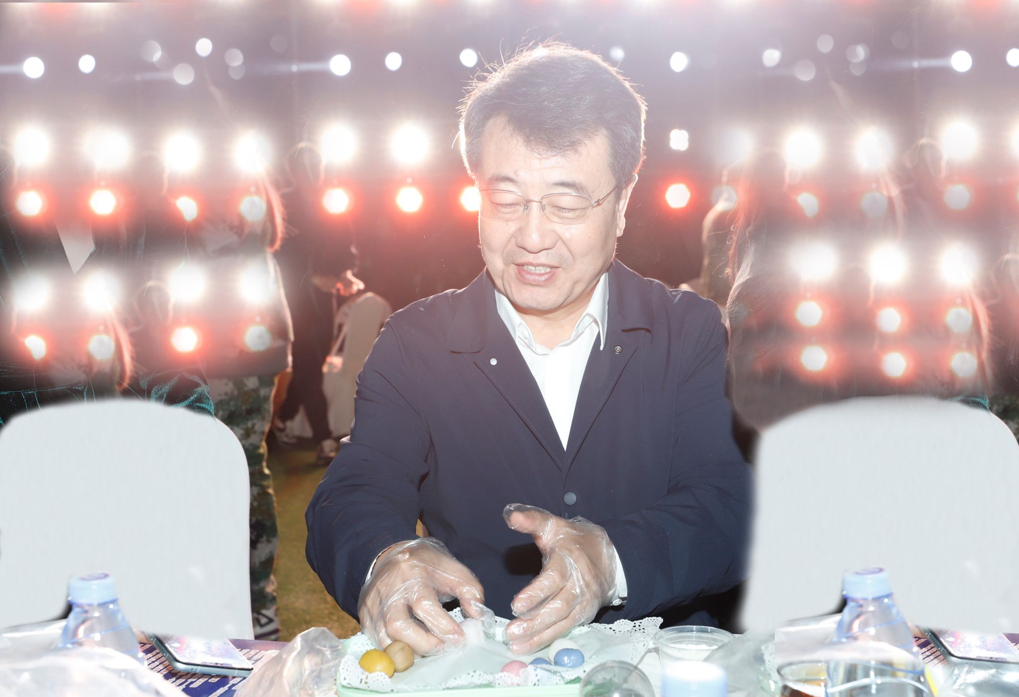 夕阳余晖中,一段由音乐与舞蹈学院学生带来的开场舞《吉祥鼓》拉开了中秋晚会的序幕,歌曲《若月亮还没来》、舞蹈《寄明月》、歌曲《如愿》让傍晚的校园充满节日的“氛围感”;一曲极具穿透力的唢呐演奏《通天大道宽又阔》将晚会带到了第一个互动环节——“师生一起做月饼”,老师们把自己亲手做的月饼赠送给同学们,同学们也为老师们送上美好的节日祝福。