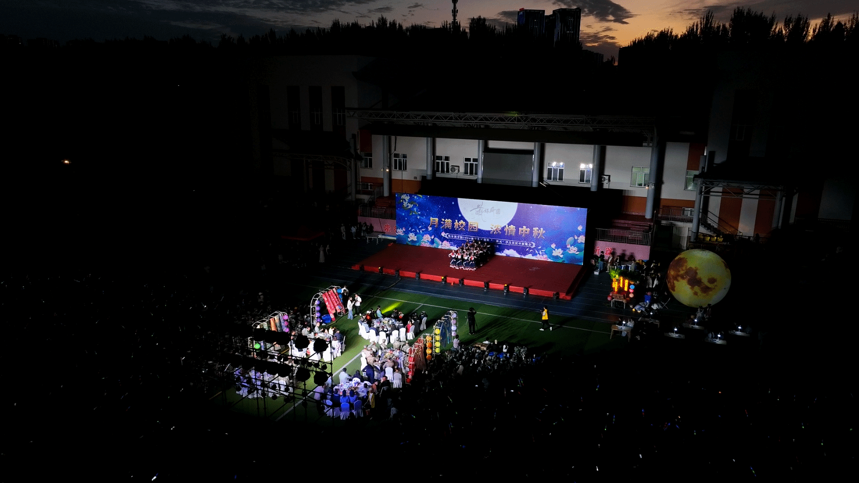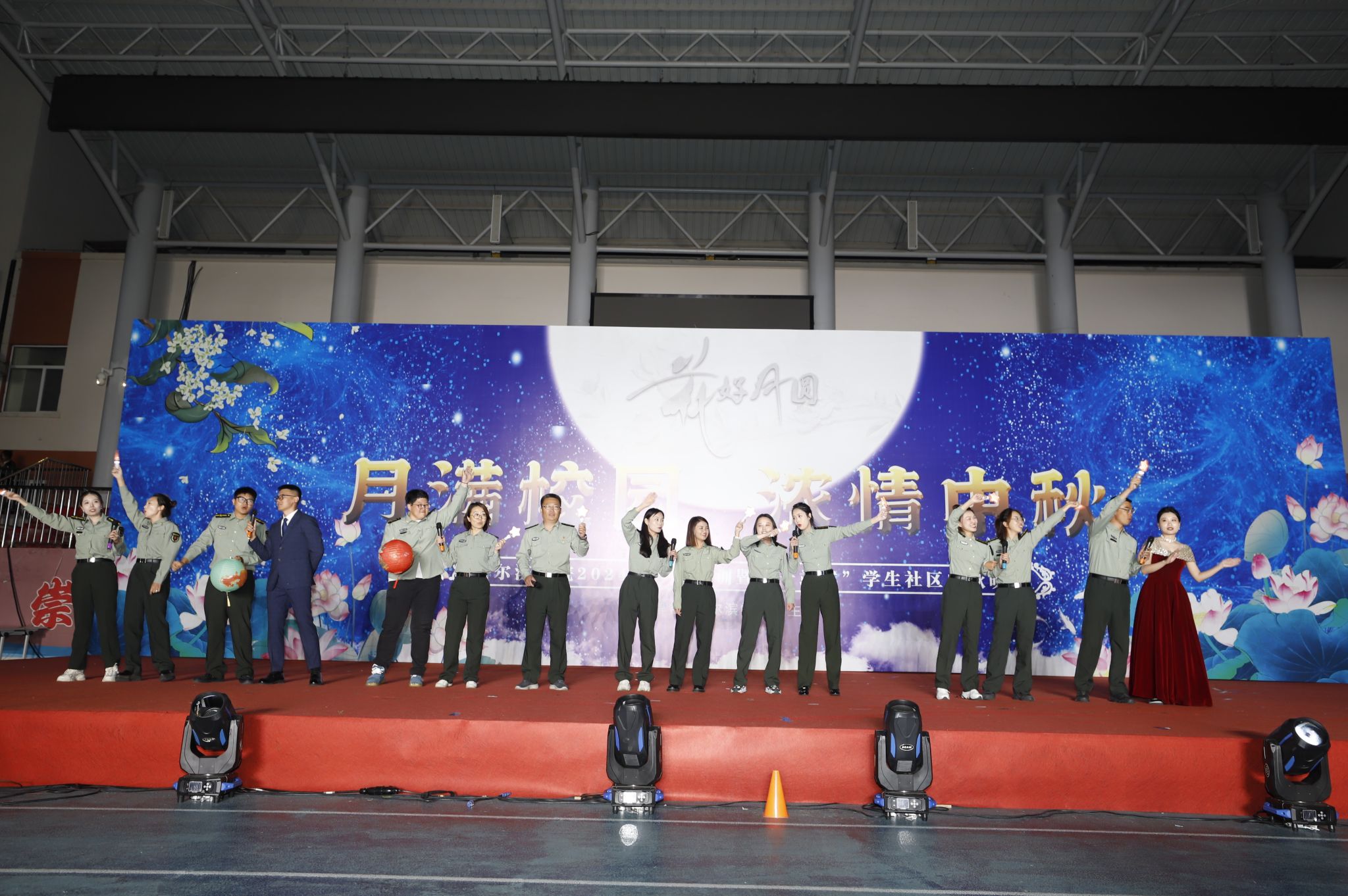 (文/张满)同赏一轮月,共话家国情,2024级学生军训期间,适逢中秋夜。9月17日晚,“月满校园 浓情中秋”2024级学生军训暨“一站式”学生社区中秋晚会在我校田径运动场举行。校长、党委副书记于成学,党委委员、副校长吴旭峰出席晚会,各职能部门负责人、二级学院党委、总支书记,全体新生辅导员、承训部队教官、少数民族学生代表及2024级全体新生、中秋留校在校生一起观看演出,共享温馨时刻。
