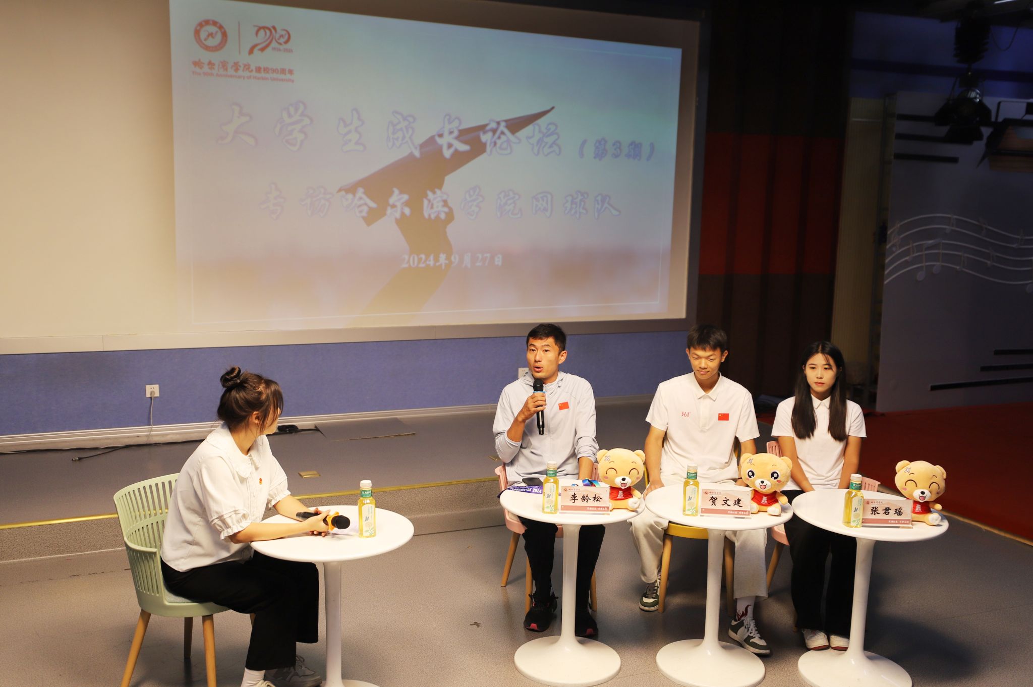 传承校训,用成绩回馈母校。学校在校庆前夕举行第三期“大学生成长论坛”,此次论坛专访了哈尔滨学院网球队主教练李龄松老师和队员代表。本次论坛通过讲述他们在赛场上争金夺银的优秀事迹,诠释了“崇德砺志、博学笃行”的校训精神,引导全体学生成为志存高远、自强不息的时代青年,用实绩回报母校的培养。