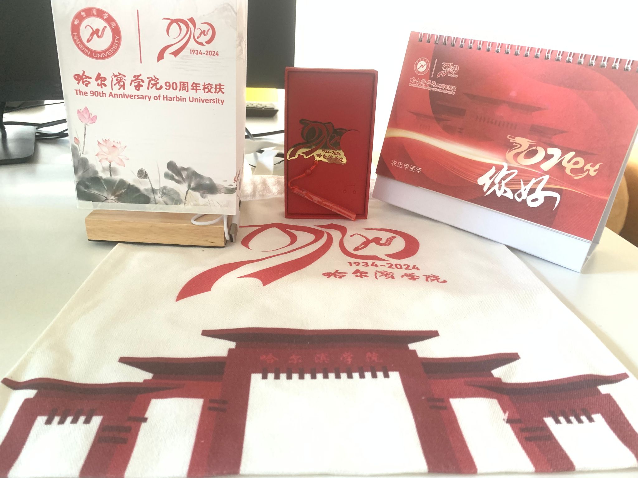 校庆文创,用青春告白母校。学校举办“写给母校的三行情诗”活动,共收到来自12个二级学院选送的600余篇诗词作品;组织学生设计制作了校庆主题帆布兜、台历、书签、台灯等文创作品。一行行诗句,一件件作品,都承载着哈院学子对学校深深的热爱与感恩。