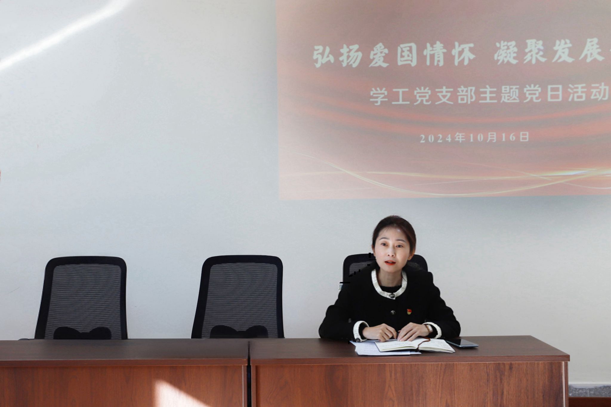 (文/张悦)为进一步加强党员的爱国主义教育,10月16日上午,学工党支部在崇德楼辅导员之家,以支部党员大会的形式,开展“弘扬爱国情怀 凝聚发展合力”主题党日活动。党委委员、副校长吴旭峰出席会议,学工党支部全体党员参加会议。活动由学工党支部书记于迪主持。