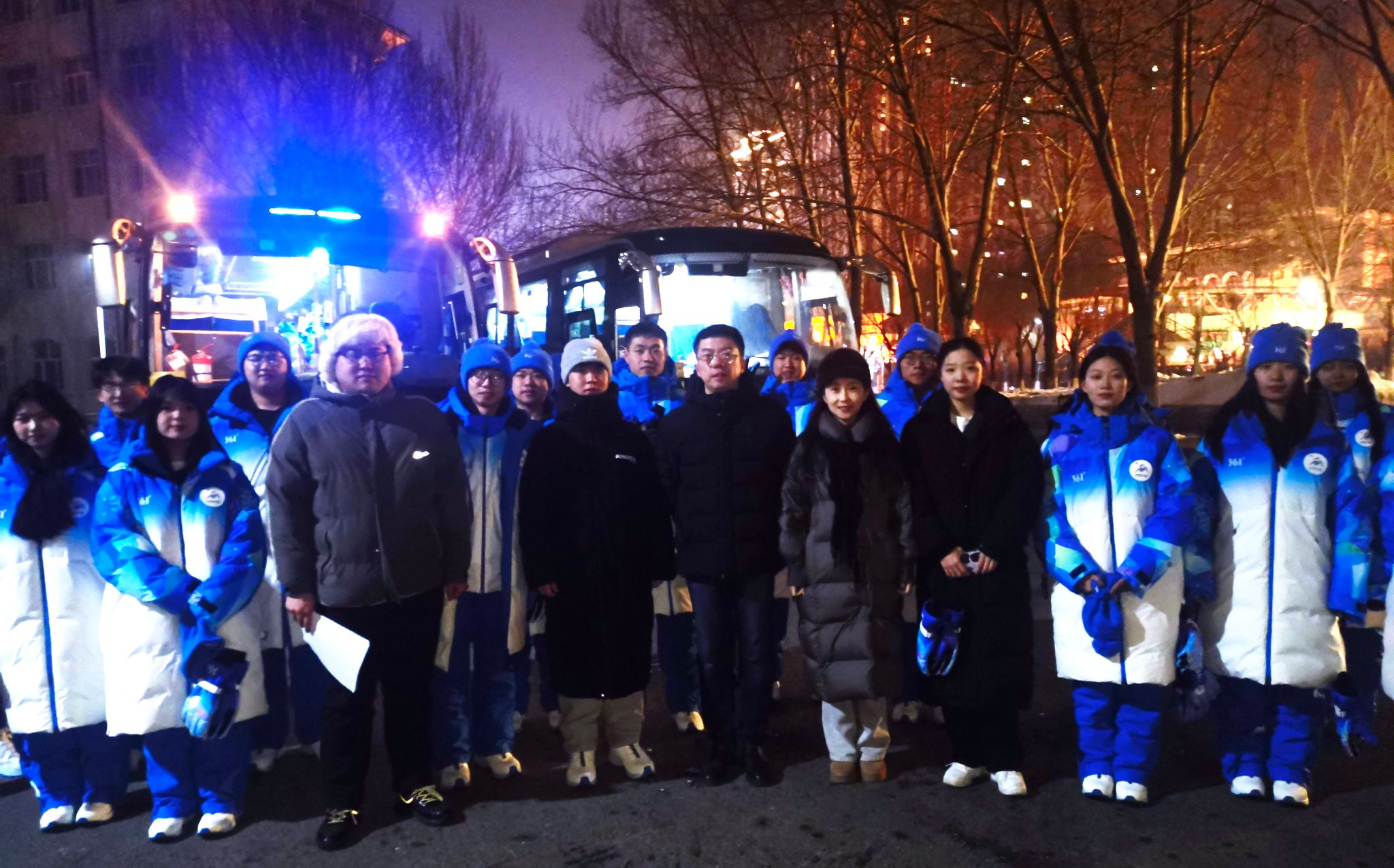 (文/左一君)1月26日晚,我校志愿者将参加亚冬会火炬传递全要素演练,本次排彩排对保障亚运动会火炬传递具有重要意义。出发前,学生处处长于迪、副处长庞哲专程来到集合点,对志愿者们进行慰问。
