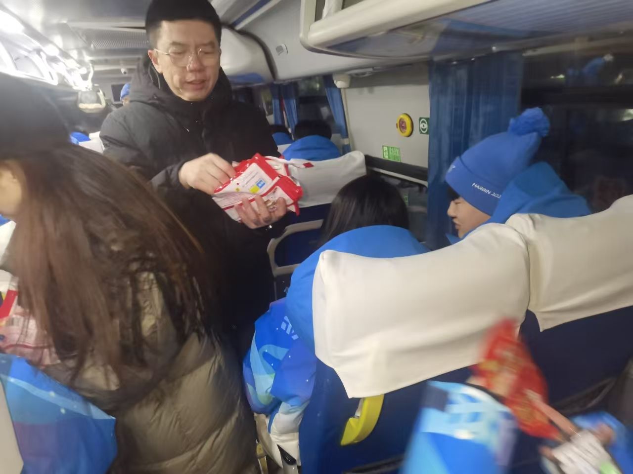 寒风瑟瑟,夜色茫茫。这个夜晚,志愿者们要持续在户外工作到第二天凌晨。于迪首先充分肯定了大家团结协作,无私奉献的精神,同时希望同学们要不畏困难,砥砺前行,展现出哈院学子的风采和素质,注意个人安全,做好保暖措施,全力完成好本次彩排任务。随后,又送上了学校为全体志愿者准备的保暖用品。志愿者们深受感动,对学校的关心纷纷表示感谢,并表达将珍惜此次机会,用实际行动为亚冬会增光添彩。