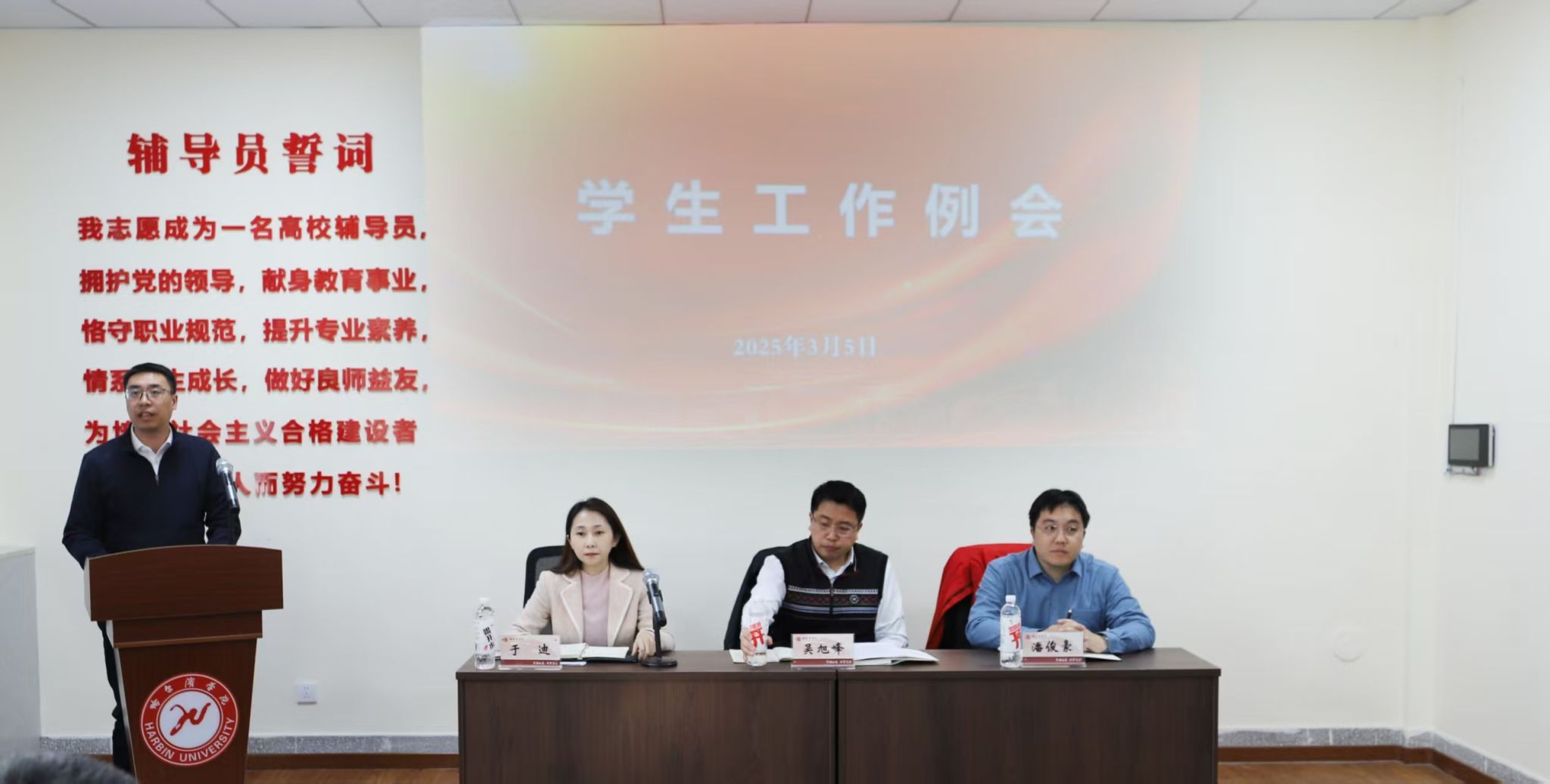 吴旭峰在总结讲话中强调,要认真贯彻落实学校第六届教代会精神,以“起步即冲刺,开局即决战”的奋斗姿态全力攻坚年度目标任务。一要谋事有方,做好工作规划。立足当前学校发展所处的历史时期,站位全局谋划工作,分析形势、理清思路,明确目标、抓住重点,确保在新起点取得新突破。二要执行有序,把稳工作节奏。不断深化对学生工作的规律性认识,合理安排时间、科学管理精力,松弛有度、收放自如,提高工作效率。三要落实有力,提升工作成效。 以“承办第12届黑龙江省大学生职业规划大赛高校本科组省级决赛、举办第四届就业体验周”为契机,提升促进毕业生高质量充分就业水平。做好亚冬会“后半篇”文章,切实把亚冬精神转化为推动工作高质量发展的强大动力,为学校建设发展作出更大贡献。
