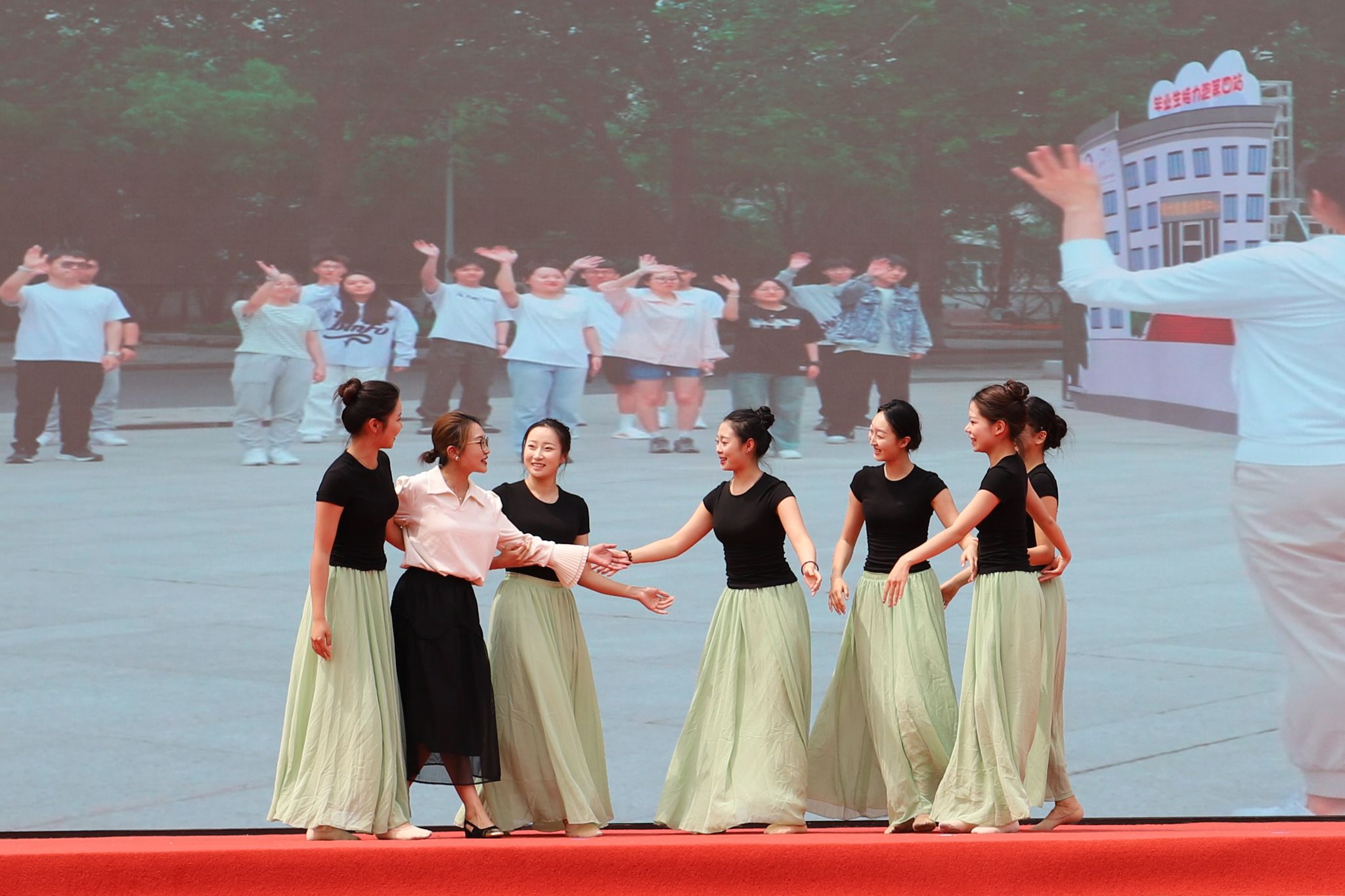 典礼尾声,《青春不散场,未来皆可期!》情景叙事表演将现场氛围推向高潮。师生在饱含深情的互动与歌声中追忆年华、互道珍重,现场汇成一片祝福的海洋,毕业生们在深情注视中整装出发。