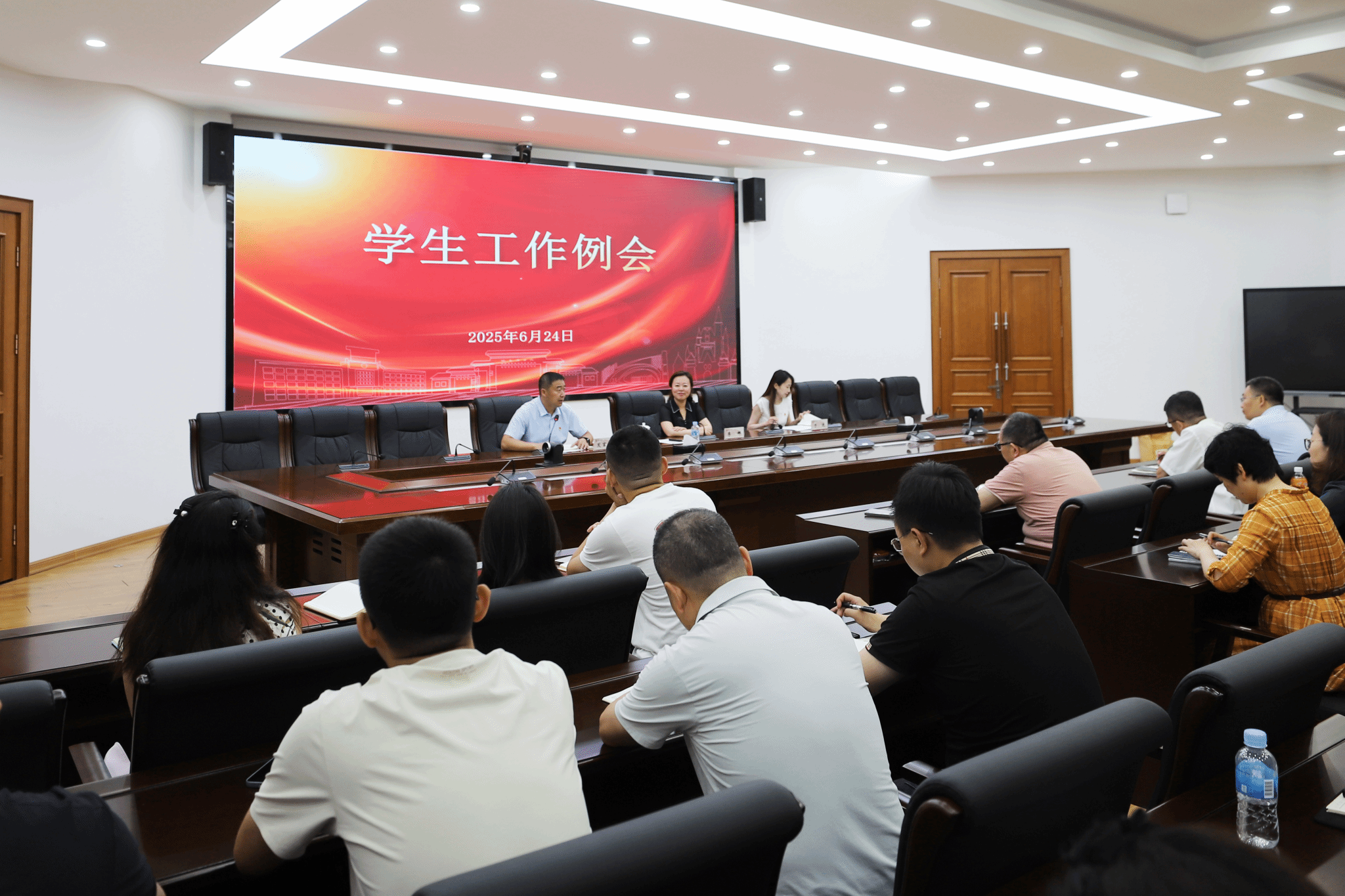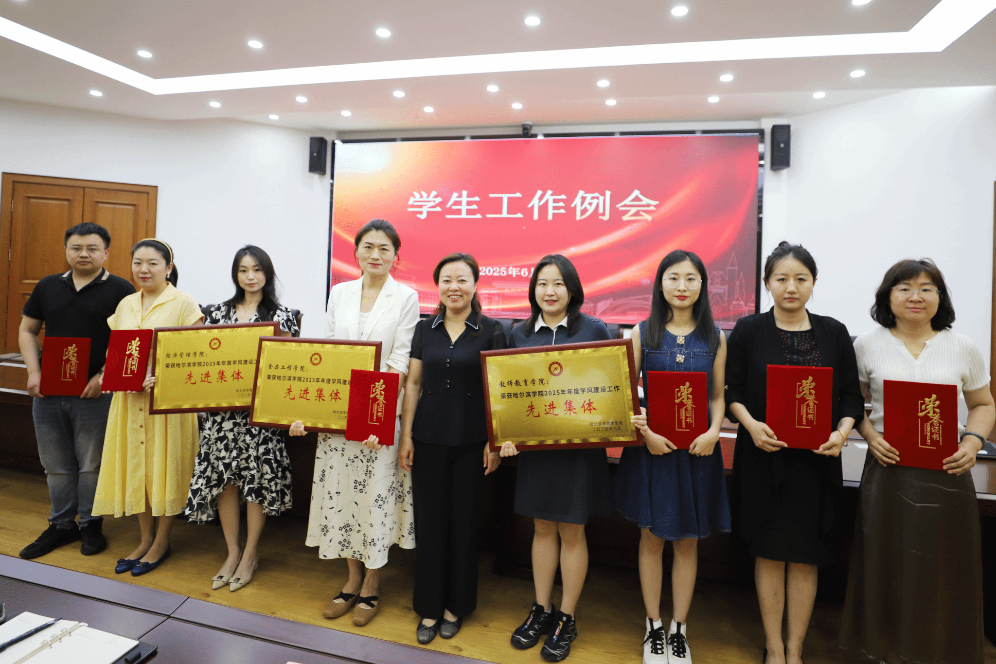会议表彰了2025年学风建设先进集体和先进个人。于迪对春季学期学生工作进行了总结,并就当前重点工作提出工作要求。学生处正处级辅导员张玉丹对近期学生宿舍管理工作进行了安排。