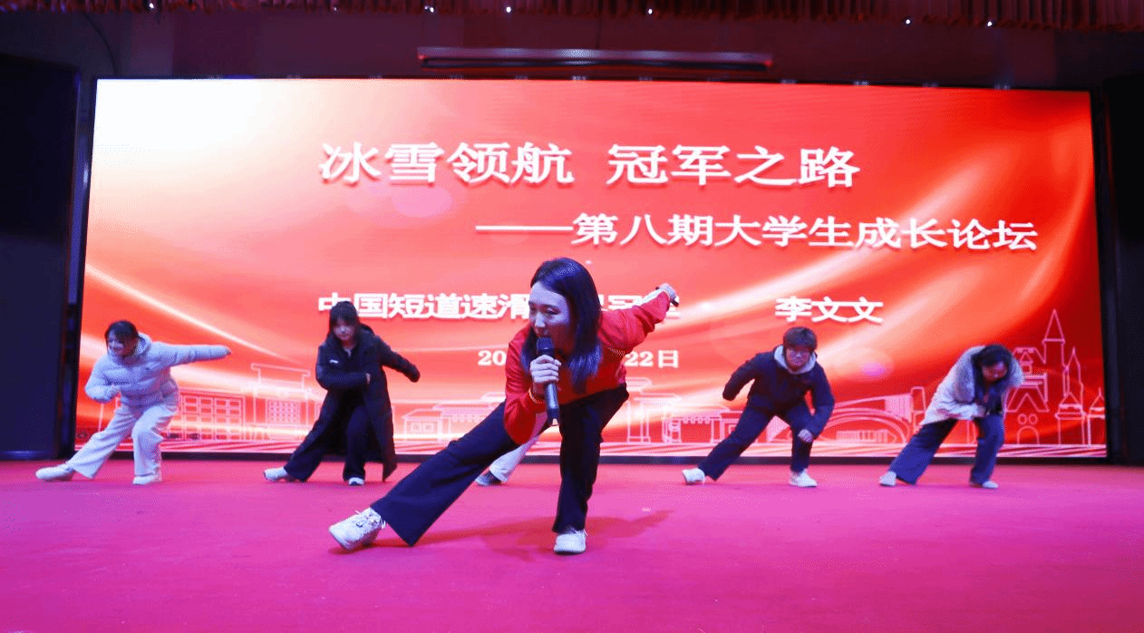 论坛特邀中国短道速滑世界冠军、我校体育学院冰雪运动专业教师李文文担任主讲嘉宾。她从自幼克服困难兼顾学业与训练,到60多次站上国内外冠军领奖台的成功与荣耀;从比赛对抗时的坚持与拼搏,到为国争光时的激动与喜悦,倾情为大家讲述成长经历和比赛感悟,激励广大同学以“冰”砺志,为校争光。同时,李文文以现场互动的方式,为与会师生讲授了短道速滑运动知识,点燃了大家对冰雪运动的热情。