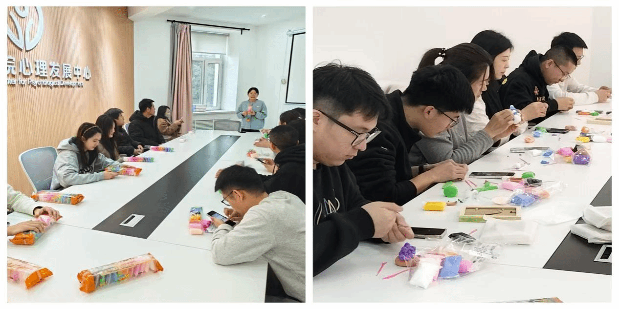 此次沙龙由“指尖奇遇”“掌心造物”“童话上色”“流光谧境”四个系列活动组成。各位辅导员动手打造人物、水果、卡通等黏土作品,为石膏模型精心上色,在慢节奏创作中沉淀思绪、舒缓压力,收获满满乐趣与成就感。