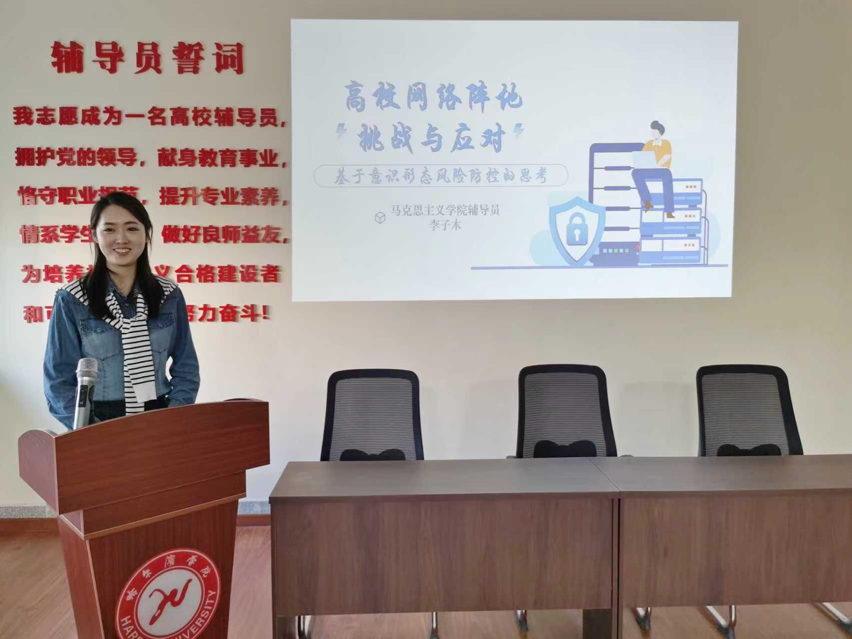 活动中,参加黑龙江省高校数字思政创新发展中心主办的“黑龙江省高校思想政治工作队伍数字安全素养专题研修班”的董佳欣、李子木老师,结合所学,从不同维度分享了高校网络阵地建设的挑战与实操应对经验。工作交流环节,文法学院、智能与建筑工程学院辅导员代表,围绕学业规划指导、情绪疏导、班级凝聚力建设等难点问题请教交流。现场辅导员深入研讨,结合实战经验给出针对性强、便于实施的建议,形成良好的互动共鉴氛围。