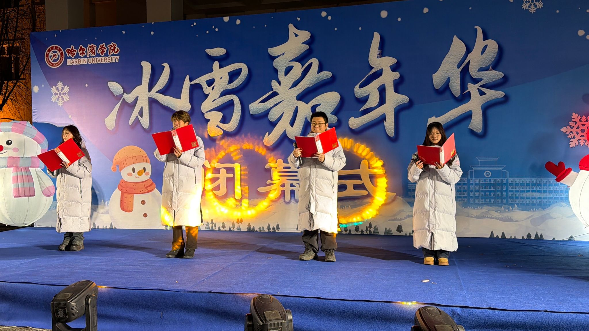 于成学在致辞中指出,本届冰雪嘉年华,是一场冰雪盛宴,更是一堂生动的“大思政课”。师生们在活动中展现出的昂扬风貌和进取精神,必将转化为推动学校高质量发展的坚实力量。他强调,立足“十五五”新征程,要深化冰雪文化育人体系建设,持续推动地域“冷资源”转化为育人“热能量”。他希望,全体师生将冰雪中的热情与坚持,融入日常学习与工作,共同书写哈尔滨学院更加美好的明天!