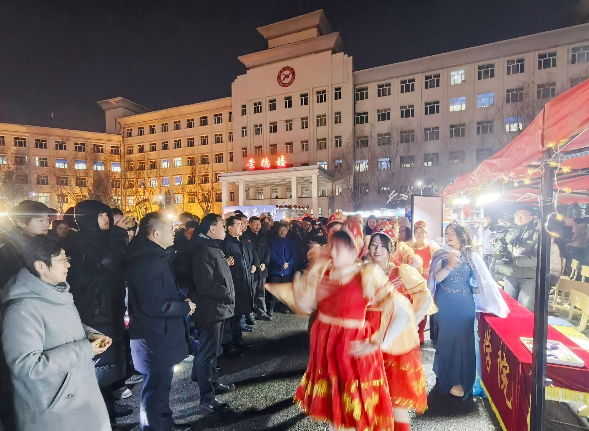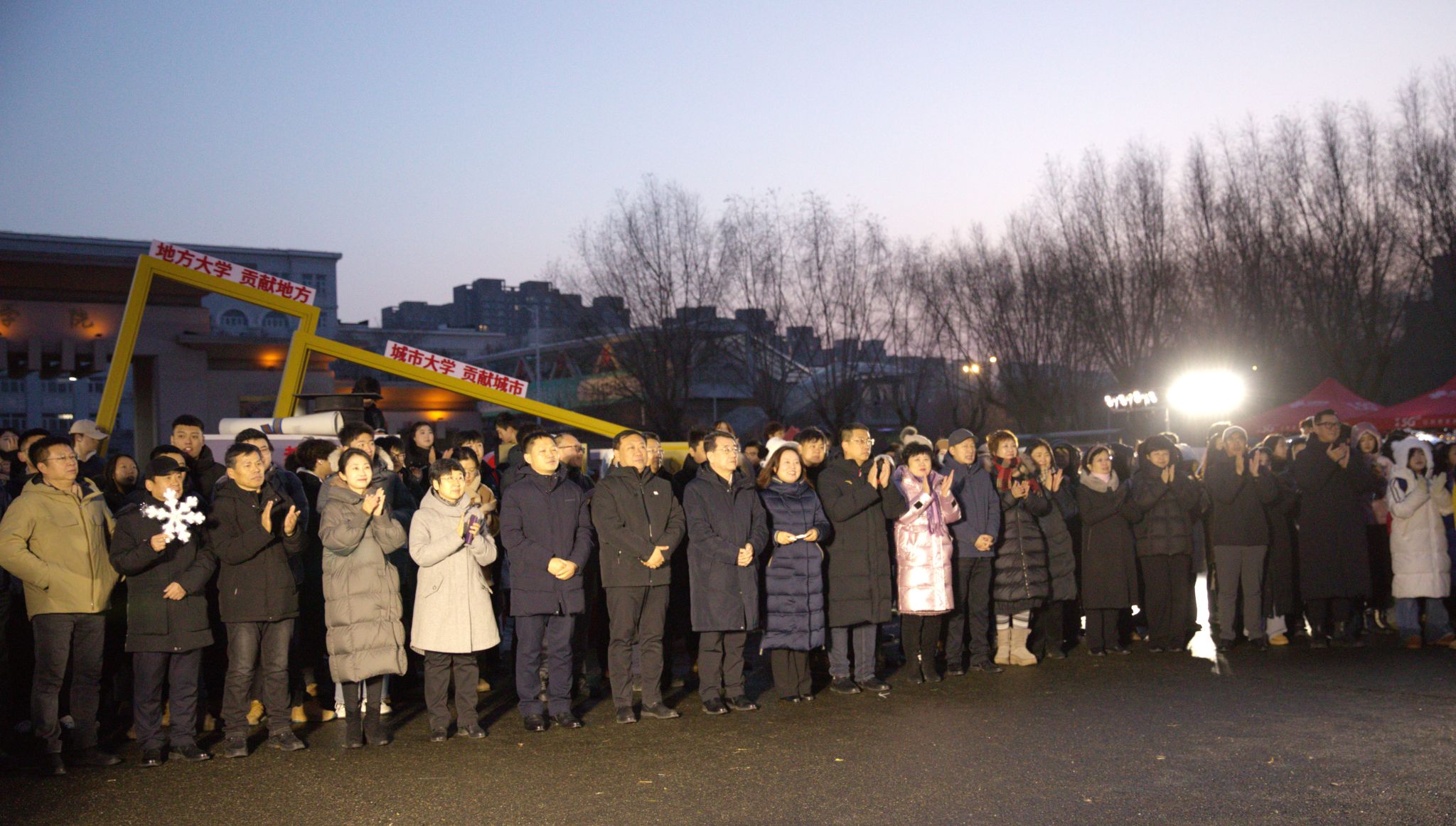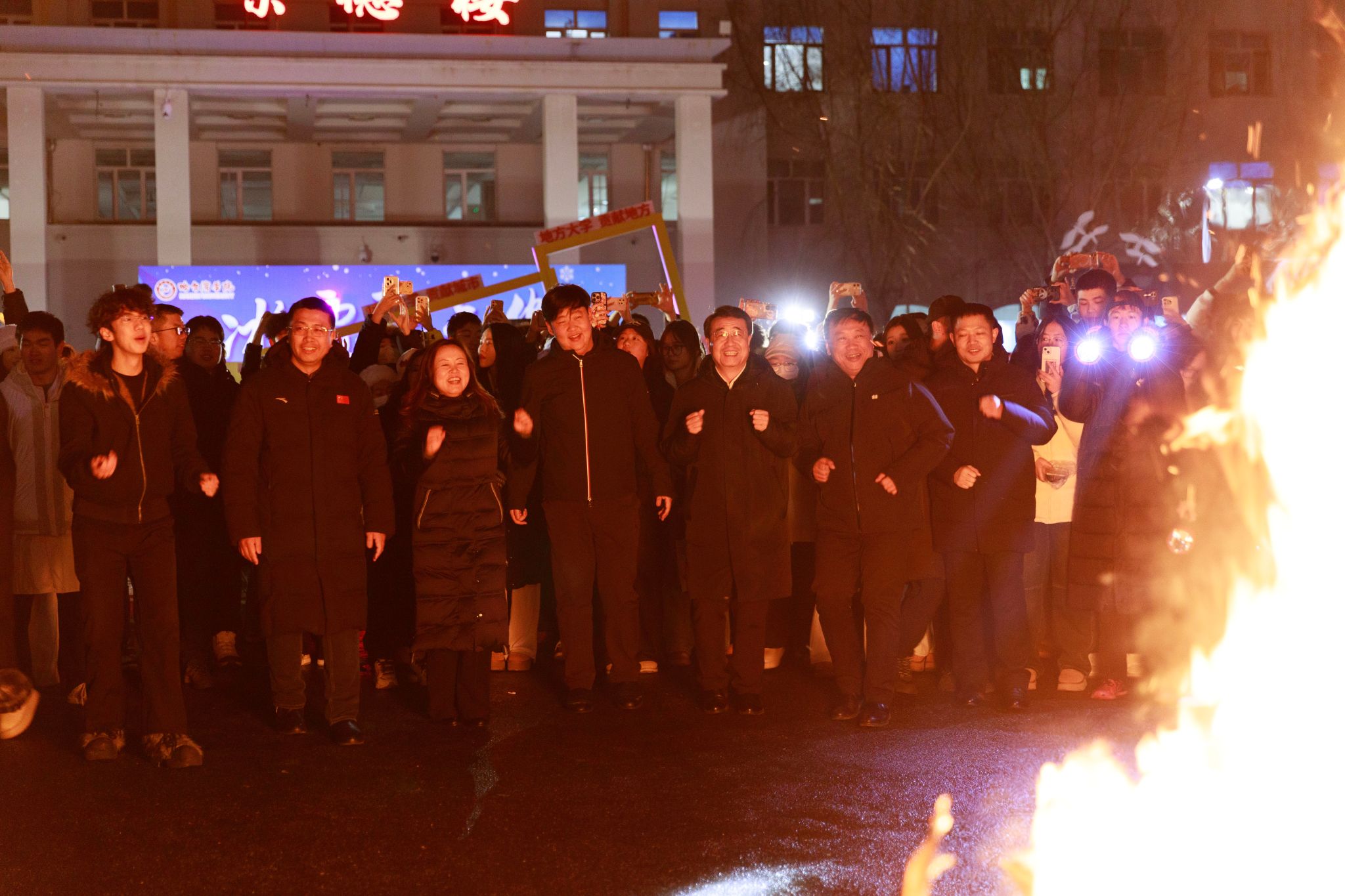 闭幕式在篝火晚会中迎来高潮。跃动的篝火映照着笑脸,师生围炉携手,载歌载舞,欢声笑语驱散了冬夜的寒意,凝聚成一段温暖而难忘的记忆。