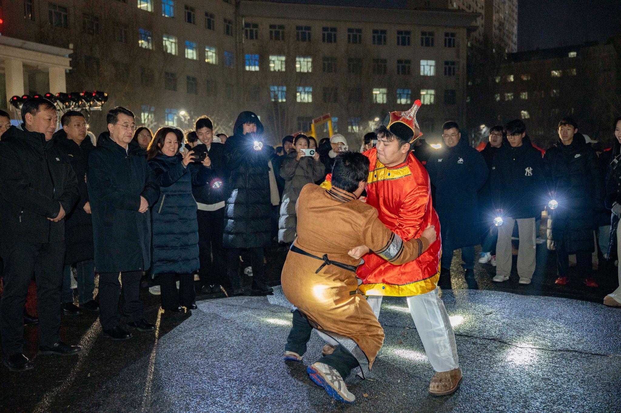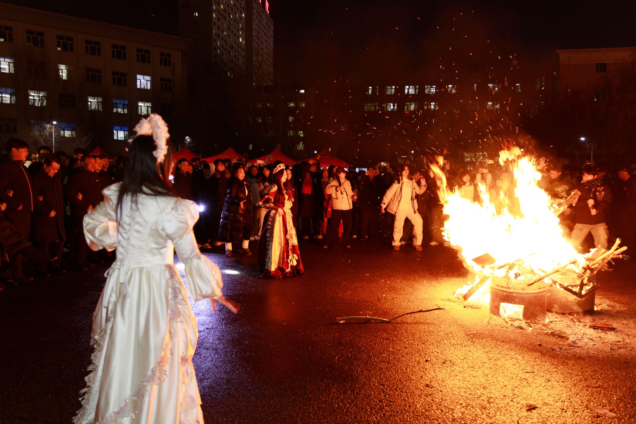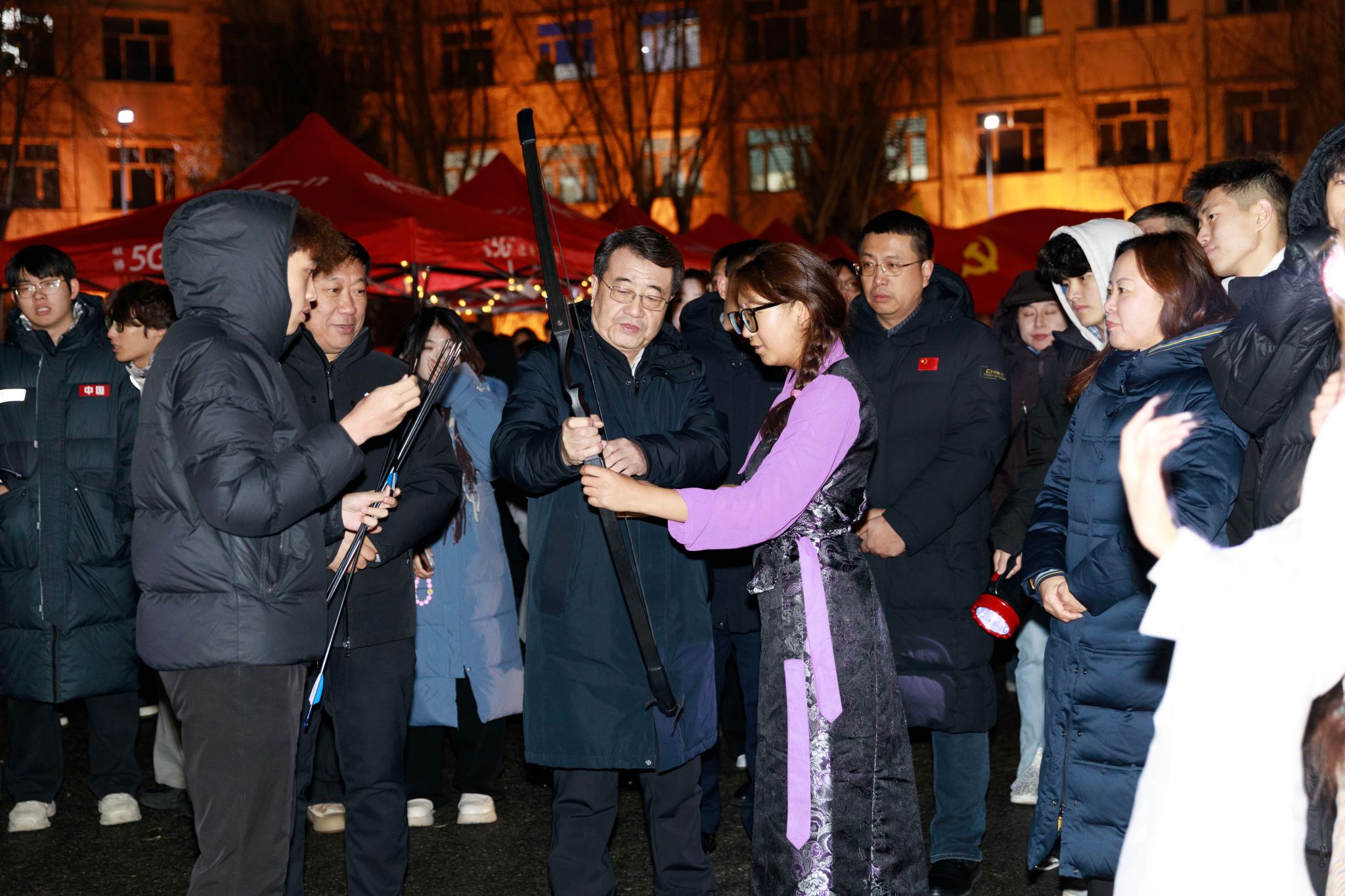 闭幕式在篝火晚会中迎来高潮。跃动的篝火映照着笑脸,师生围炉携手,载歌载舞,欢声笑语驱散了冬夜的寒意,凝聚成一段温暖而难忘的记忆。