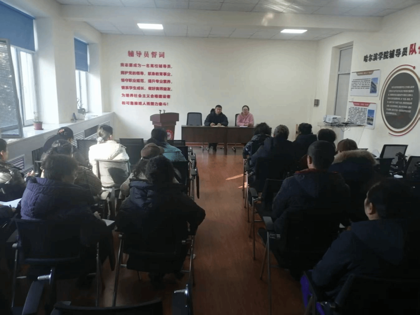 (文/李丹)2月28日,学生处召开新学期公寓工作会议。舍务管理科工作人员、全体楼长参加会议。会议由学生处正处级辅导员张玉丹主持。