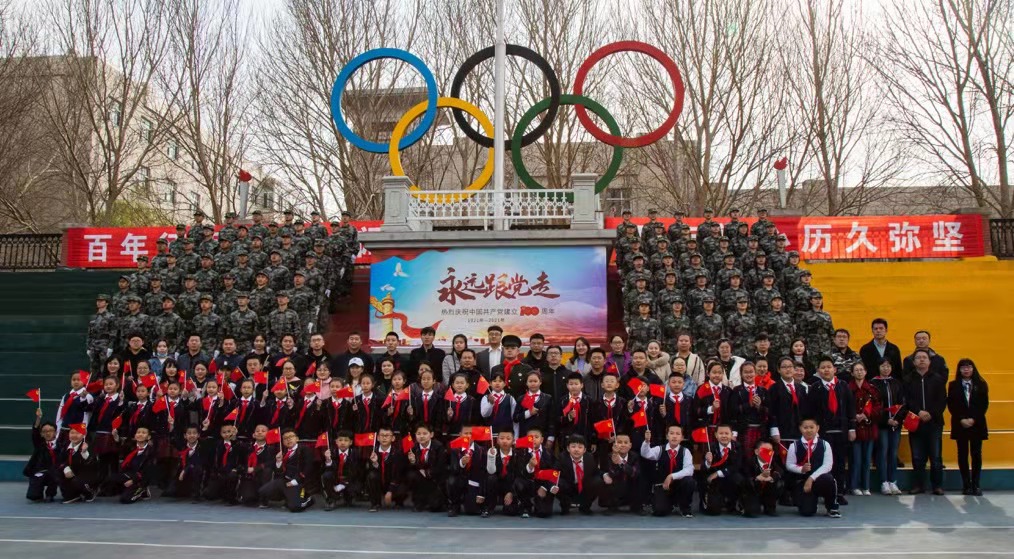 早7时,在校国旗护卫队的护卫下,鲜艳的五星红旗伴随着雄壮激昂的国歌声冉冉升起。原中国人民解放军三军仪仗大队国旗护卫队优秀士官于璞以“学党史不忘初心、爱国旗牢记使命”为题进行国旗下发言,他带领全体师生回顾了天安门国旗护卫队的光荣历史,并结合自身服役经历向全校学生提出倡议:广大青年学子要充分认识中国共产党为什么“能”、马克思主义为什么“行”,只有在中国共产党领导下的中国才能繁荣发展,作为新时代大学生要拼搏奋进,全面发展,努力为民族复兴铺路架桥、为国家建设贡献青春力量。